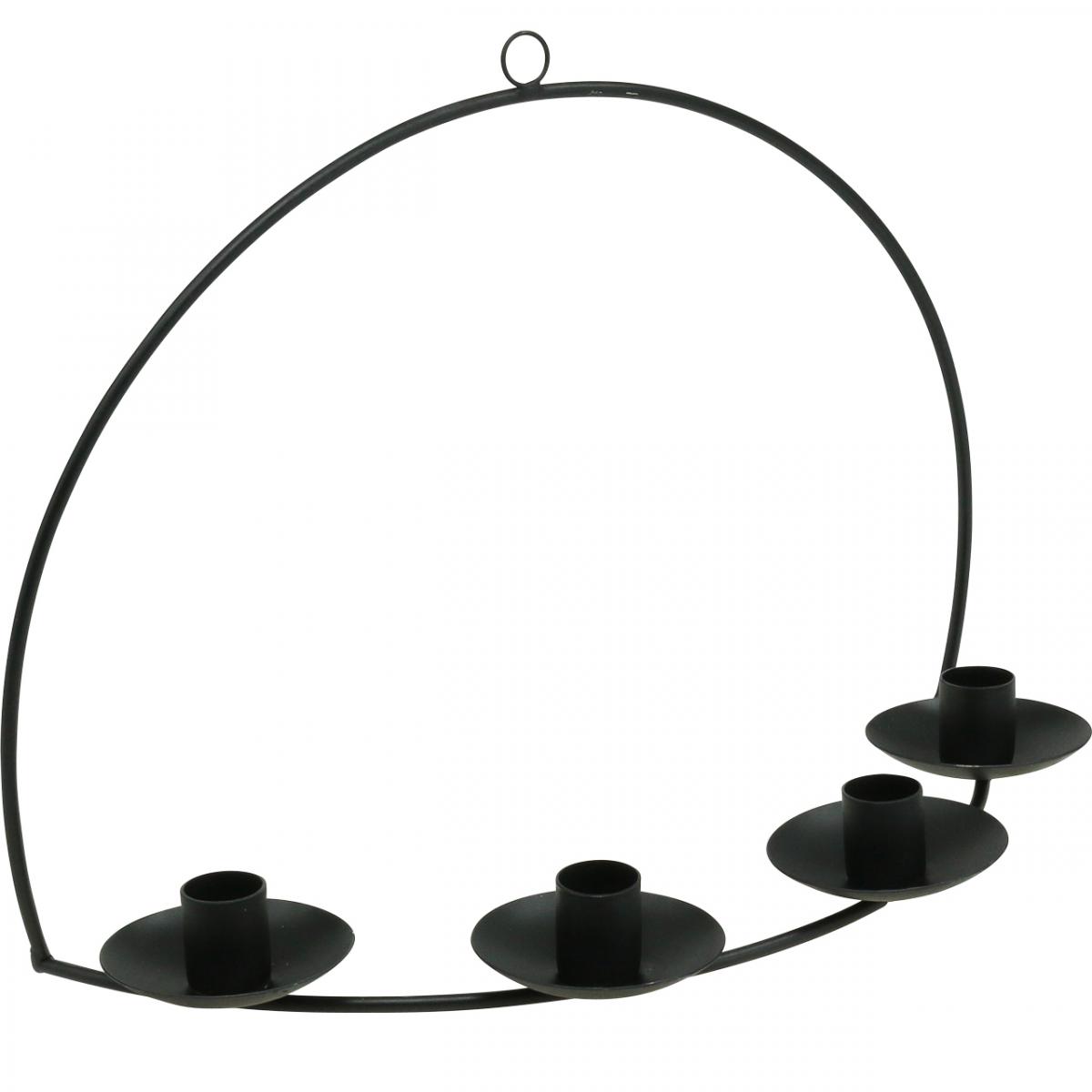 Az egyszerű fekete lehetőséget ad arra, hogy a fali mécsestartót színes vagy fémes gyertyákkal különböző és egyedi módon díszítse. Mivel a gyertyatartó dekoratív hurokra hasonlít, maga a fémdísz szalagokkal és szárított virágokkal vagy művirágokkal díszíti.