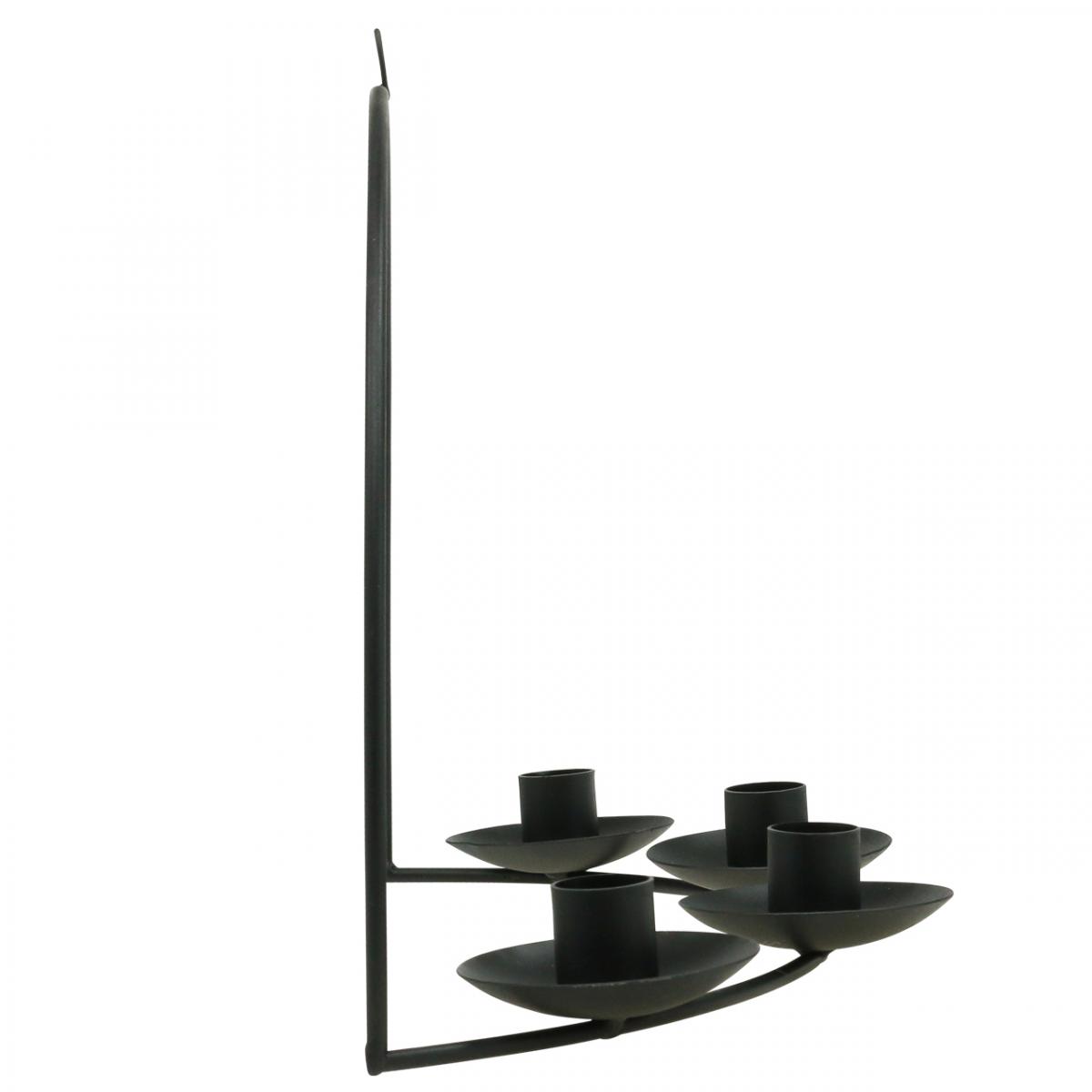 Fali gyertyatartó Fekete fém pálcás gyertyatartó 35×24cm