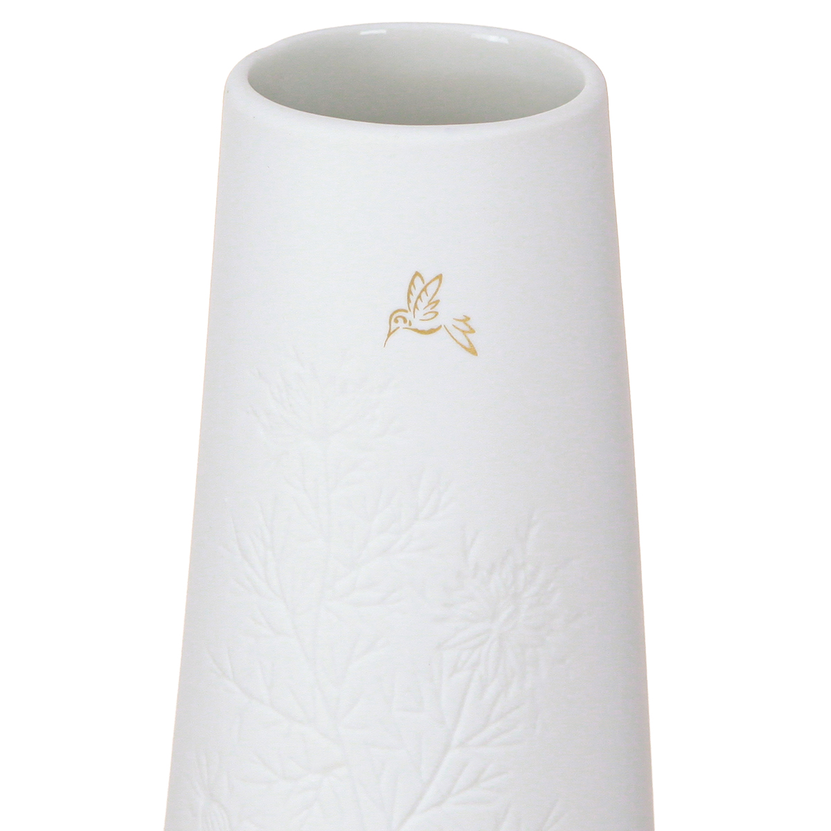 Fehér és arany kerámia váza madárdíszítéssel, Ø6,5cm M19cm, 2 darab