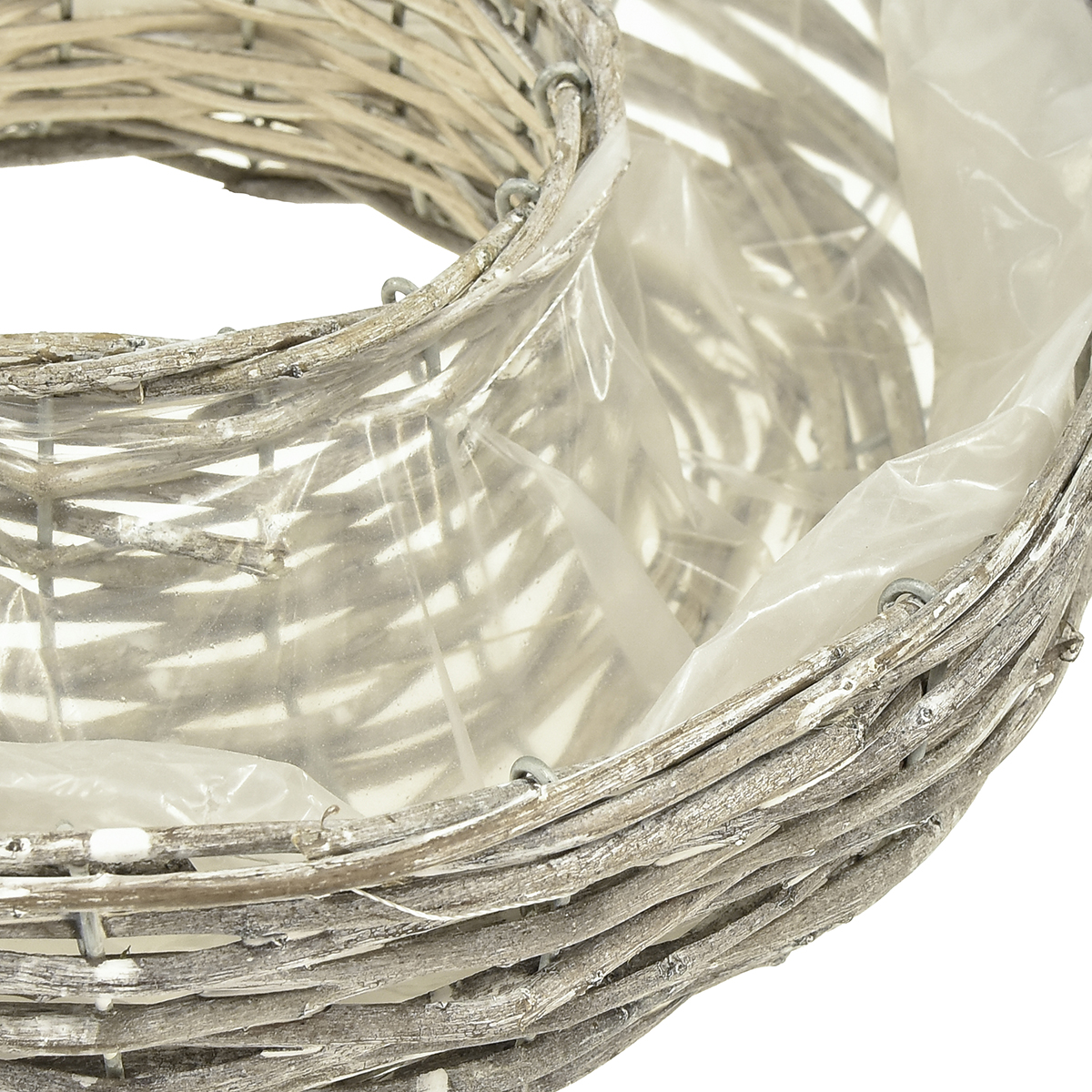 Fűzfa tálunk a hagyományos kézműves mesterséget a modern dizájnnal ötvözi. A természetes fűzfa anyag fehér tónusban van mosva, így minden tál egyedivé válik. A robusztus belső gyűrű és a központi nyílás elegendő helyet biztosít a növények számára. A fémváz biztosítja a szükséges stabilitást, míg a fonott fűzfaágak átgondolt, tetszetős külsőt alkotnak. A behelyezett fólia fehér fonallal van rögzítve, hogy megőrizze a talajt és a nedvességet, és tisztán tartsa lakóterét.