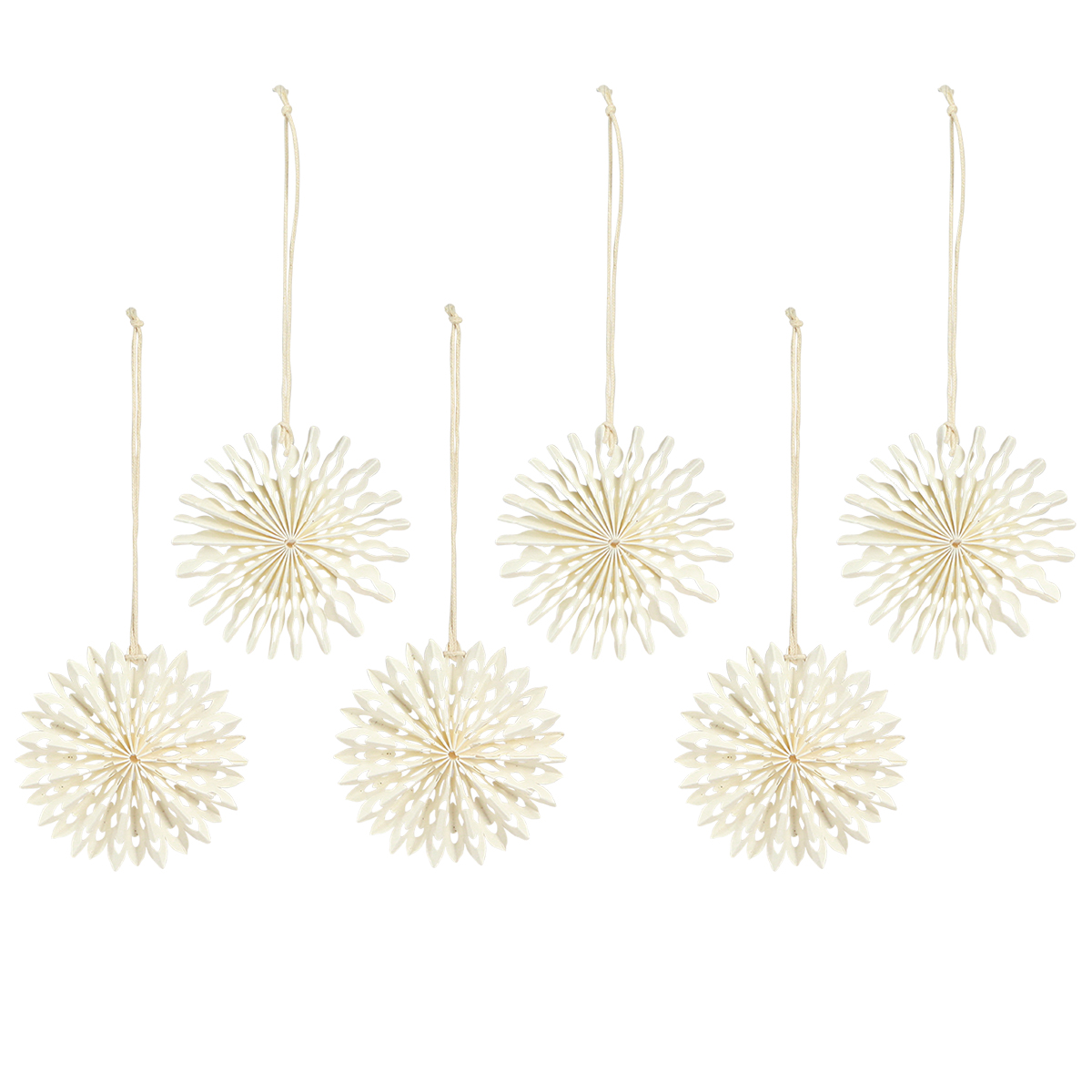 Fehér papír csillag karácsonyfadísz, függő dekoráció, Ø10cm, 6 darab