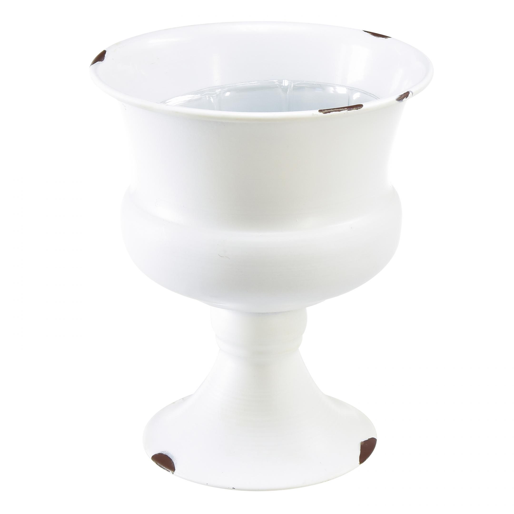 Fehér rozsdaszínű trófeaváza, shabby chic vintage stílus, Ø13,5cm, M15cm