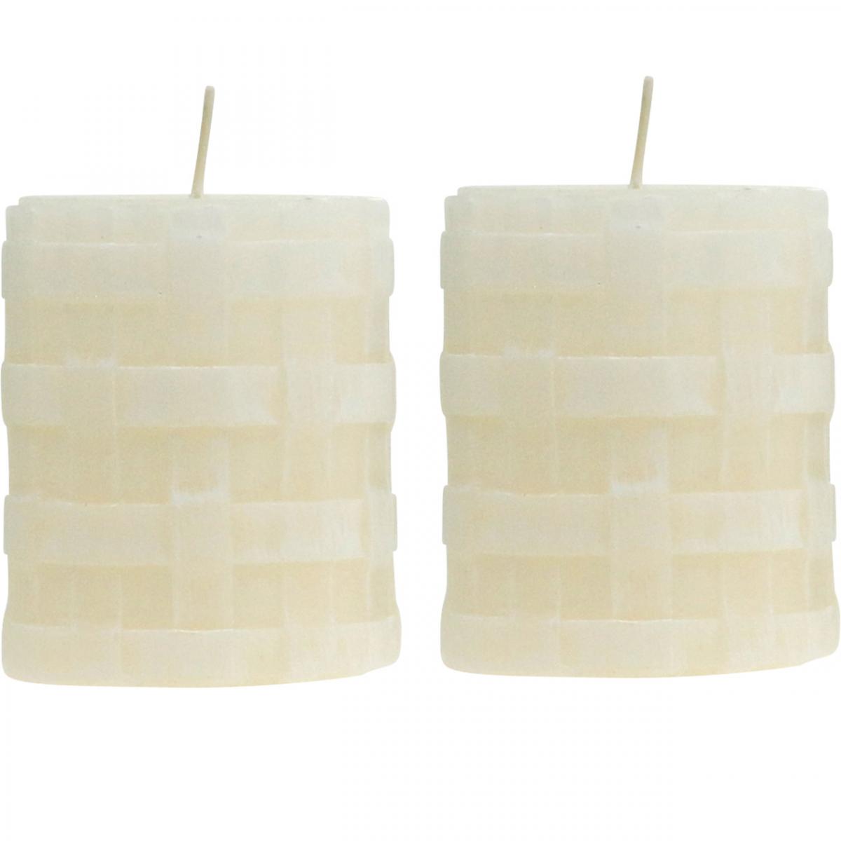 Fehér rusztikus oszlopgyertyák 80/65, 2 darabos szett, biztonságos vintage dekoráció