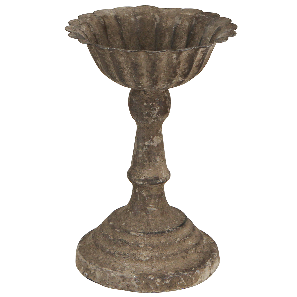 Fém dísztál lábon antik szürke barna serleg Ø12cm H18cm