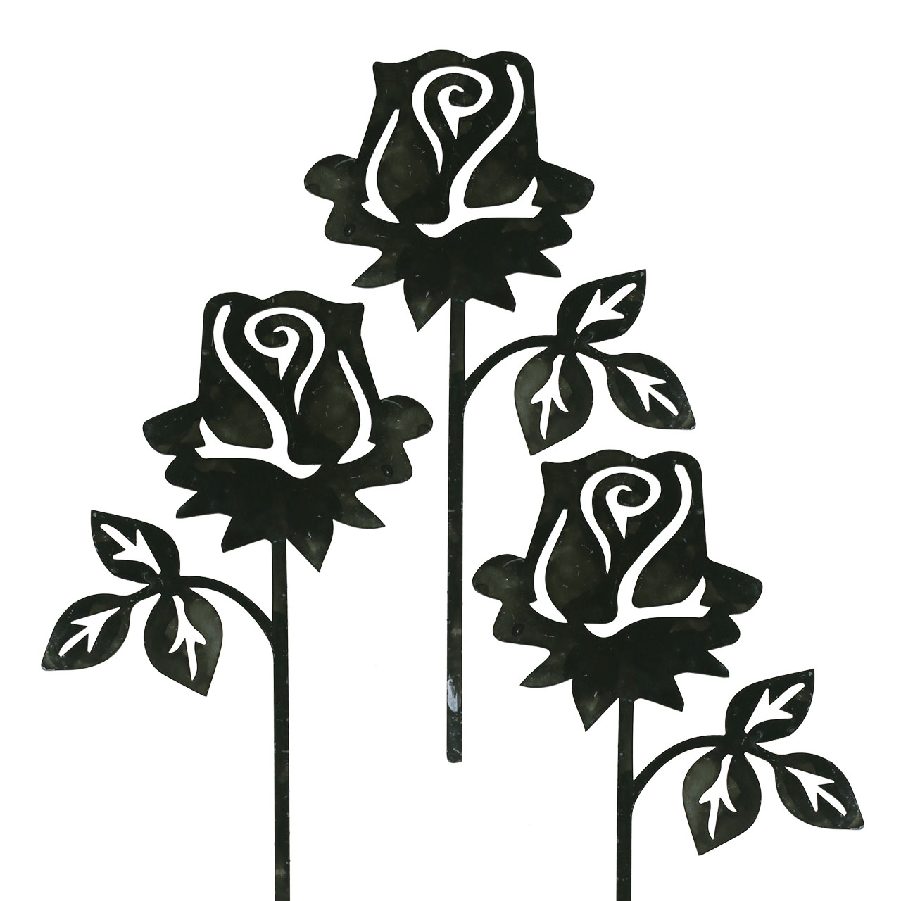 A rúdrózsa nagy virággal és három rózsaszirmú ággal rendelkezik. Tedd a fém rózsát díszdugóként egy virágcserépbe, vagy használd dekorációs elemként díszekbe, virágcserepekbe vagy növénykosarakba.