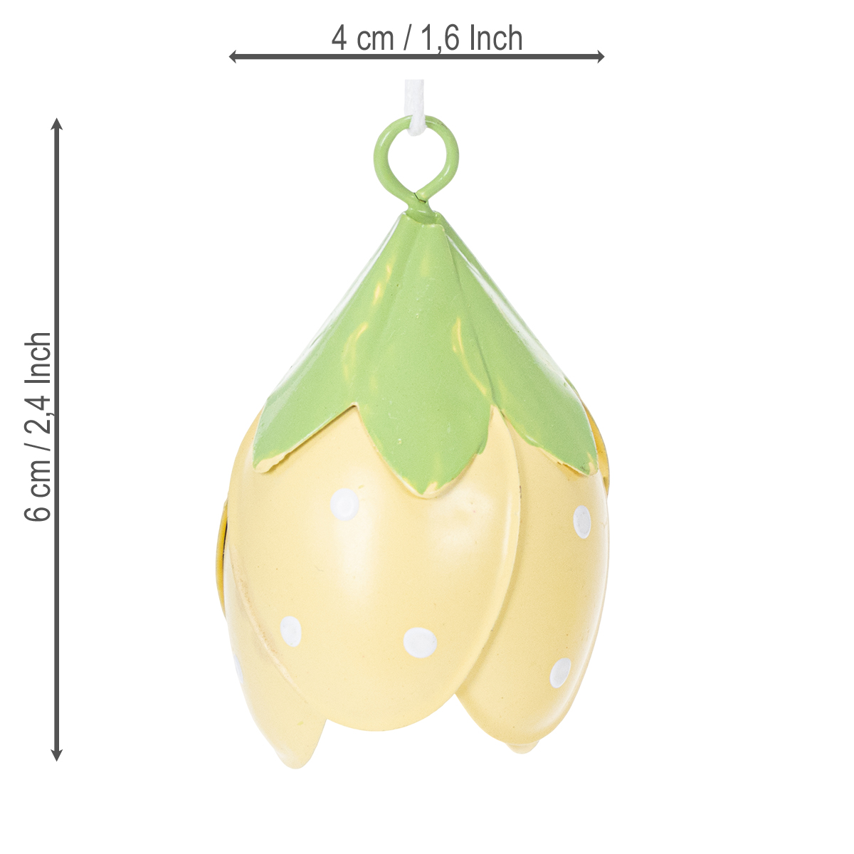 Ezek a függő fémvirágok ideálisak mindazok számára, akik szeretik a játékos és romantikus dekorációkat. 6 cm magasak és 4 cm átmérőjűek, nem túl nagyok, mégis stílusosak. A finom sárga és zöld színek friss megjelenést kölcsönöznek, és gyönyörűen illeszkednek a különféle stílusokba – a vidéki stílustól és a shabby chic-től a klasszikus virágdíszekig. Kiváló minőségű fémszerkezetüknek köszönhetően a virágok robusztusak, és beltéri és kültéri használatra egyaránt alkalmasak. Különösen bájosan mutatnak egy bejáratban, ahol vidám hangulattal fogadják a vendégeket.
