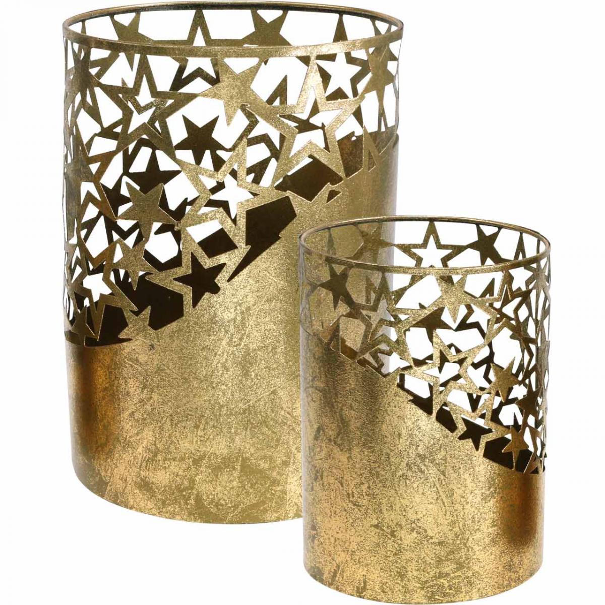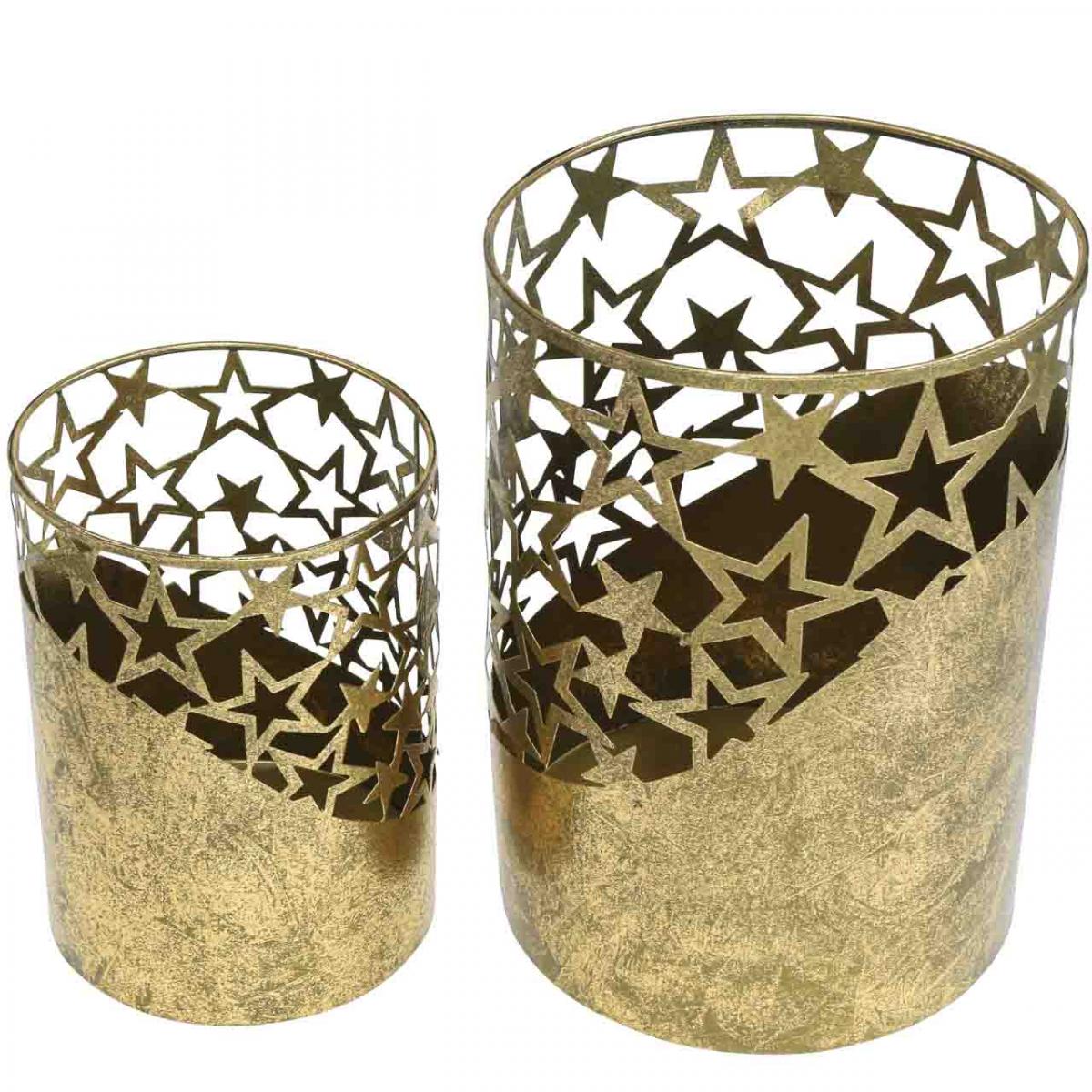 Fém lámpás arany levél csillagok Ø15cm/20cm 2 db-os készlet