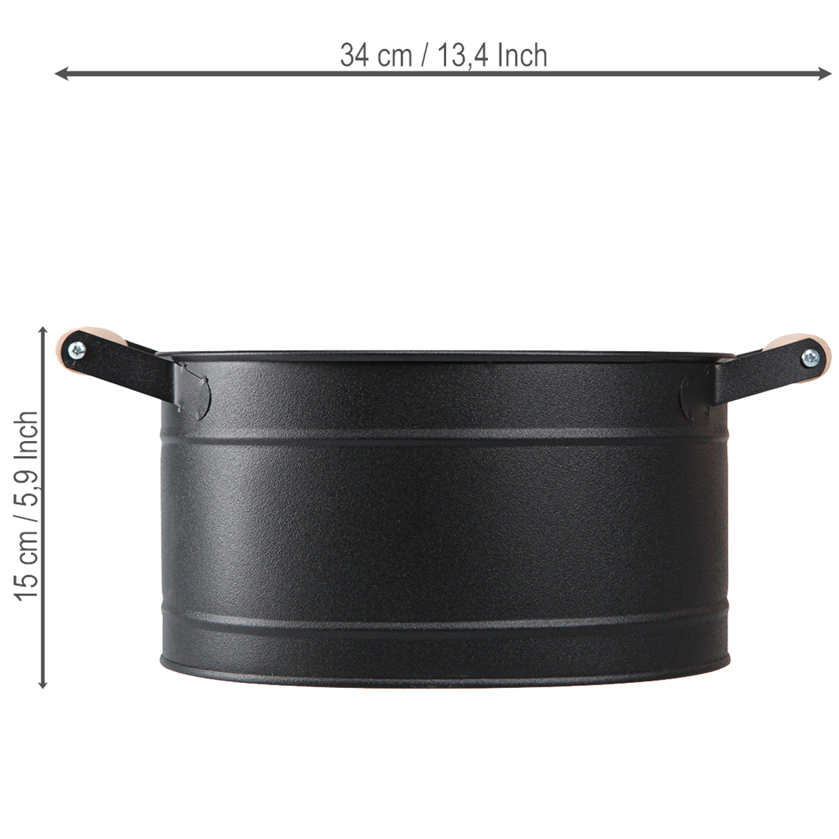 Fém ovális virágcserép füllel, fekete és natúr felülettel, 34x19,5x15cm