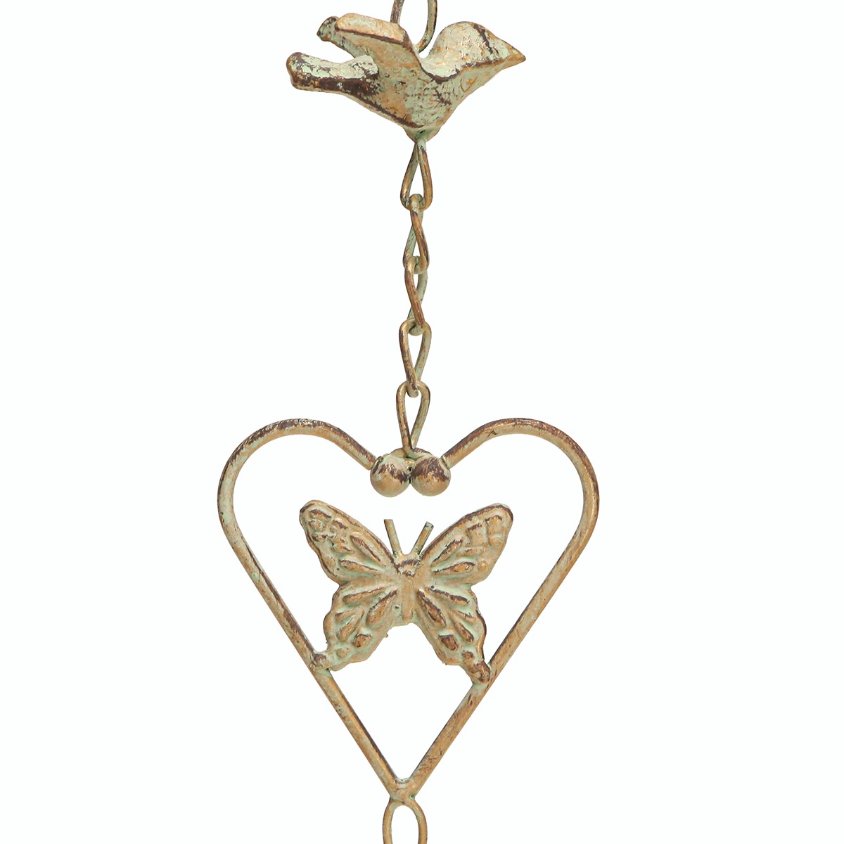 Romantikus fém szélcsengő szívvel és haranggal – antik stílusú kerti dekoráció