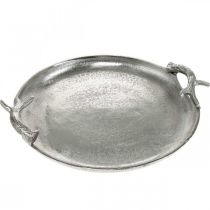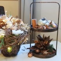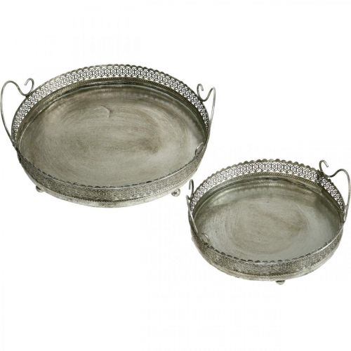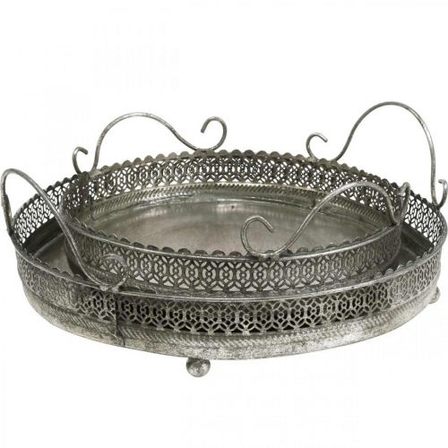 Fémtálca: Dekoratív fémtálca és állvány a dekorációihoz