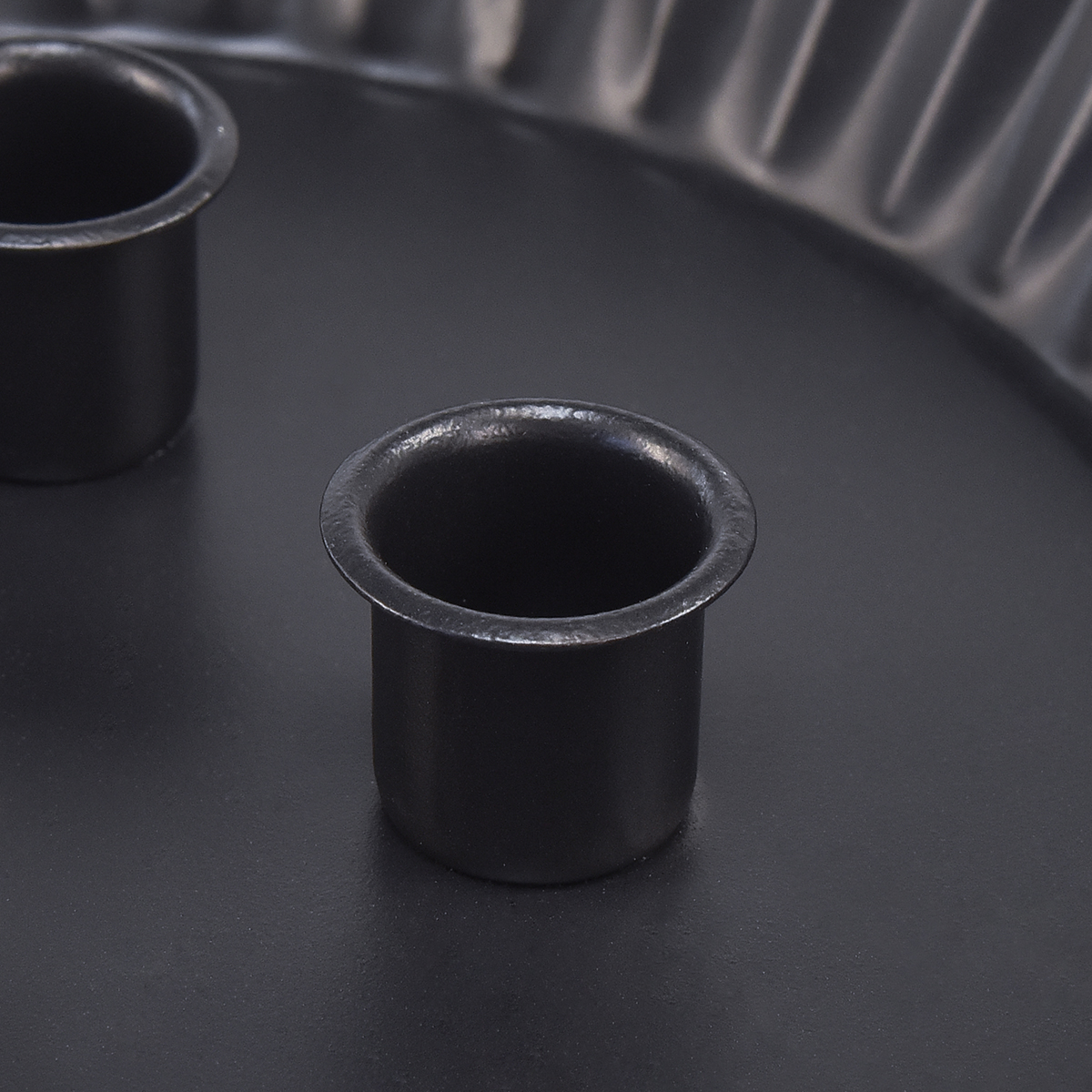 Termék neve: Fém torta alakú gyertyatartó – Fekete, Ø 24 cm – Elegáns asztaldísz 4 gyertyához – 2 darab