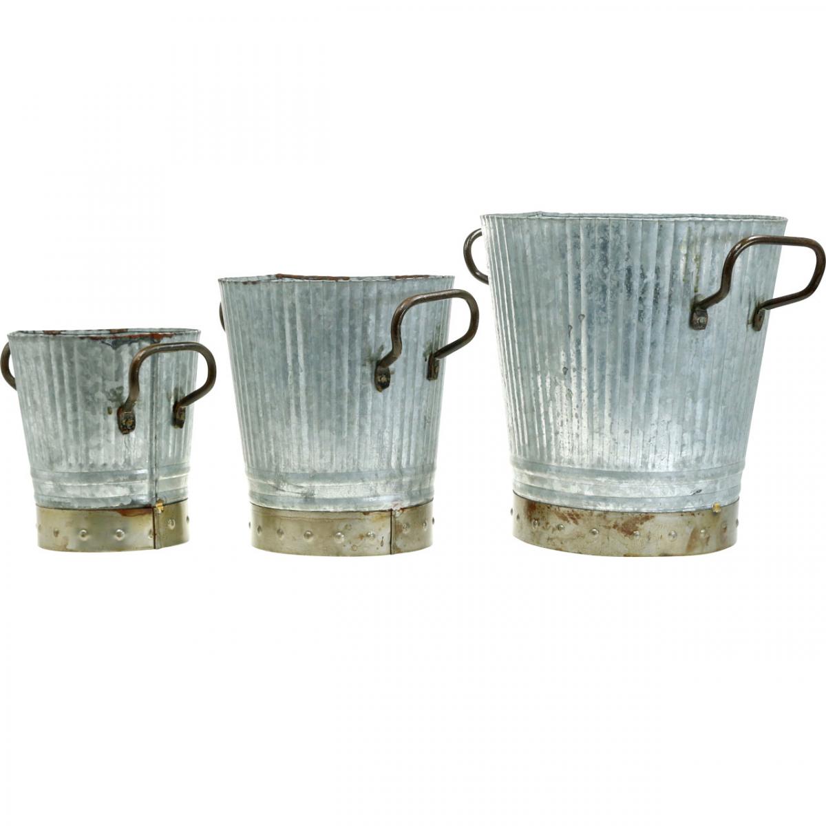 Fém ültetőgép fogantyúkkal vintage dekorációval Ø26/20/17cm 3 db-os készlet