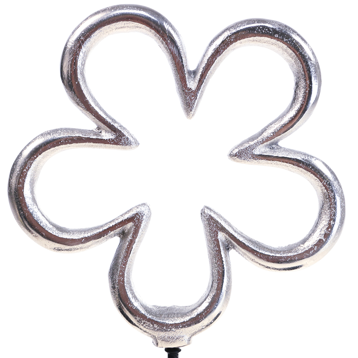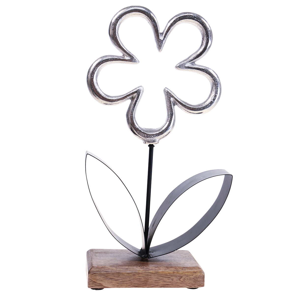 A díszvirág alapja fából, a szár és a nagy virág fémből készült. A virág egyes összetevői puszta sziluettekként jelennek meg. Az asztaldísz elegáns és barátságos egyben.