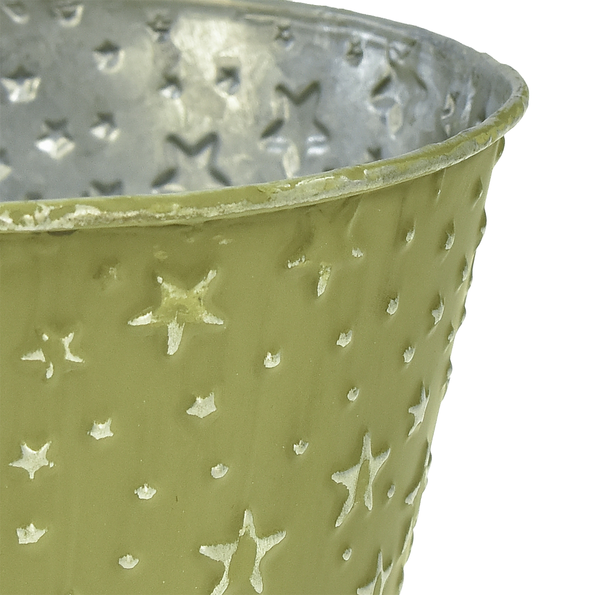 Fém virágcserép csillagok zöld ezüst Ø16cm