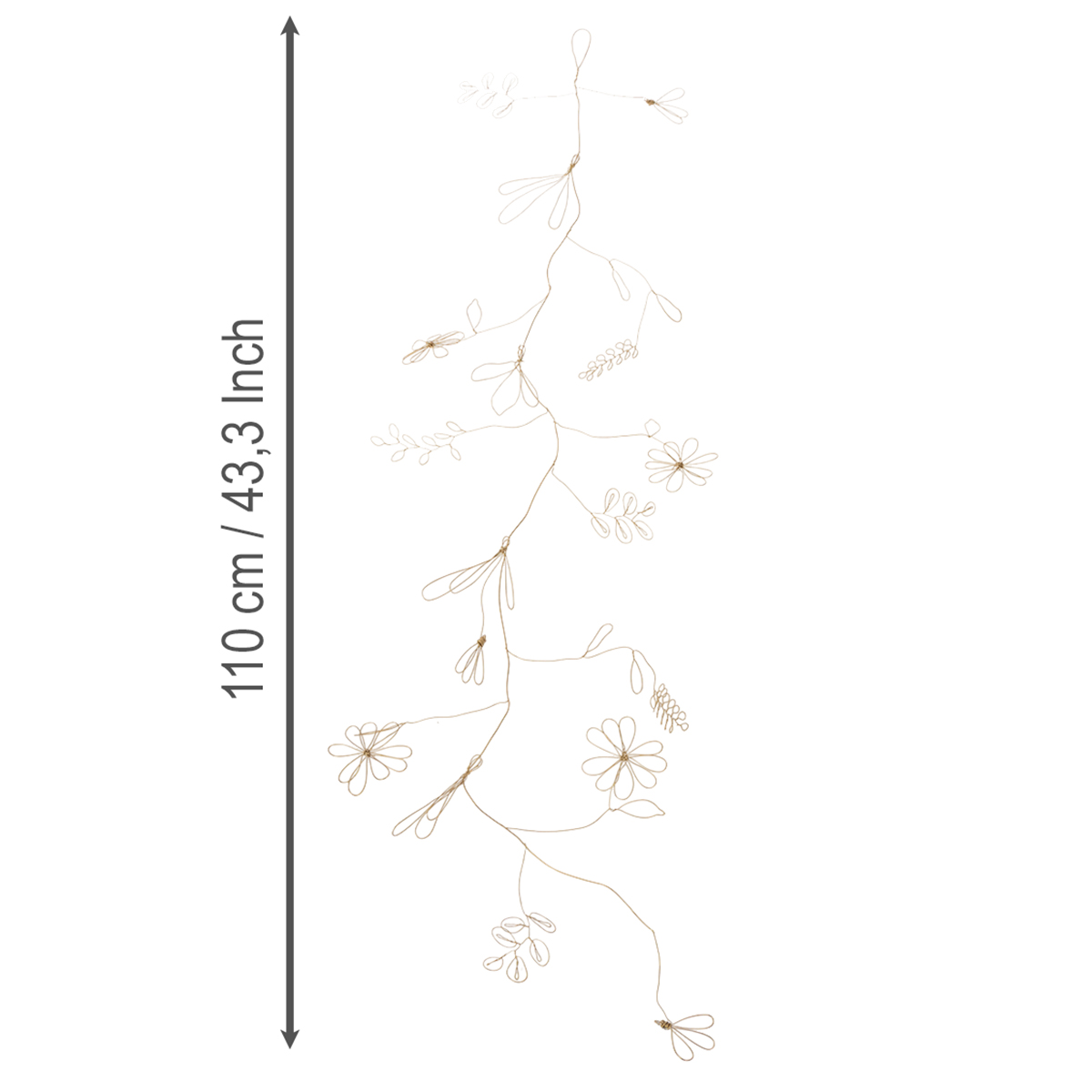 Fém virágdekorációs girland, drót virágkoszorúhoz, nyári dekoráció, fali dekoráció, arany, 110cm