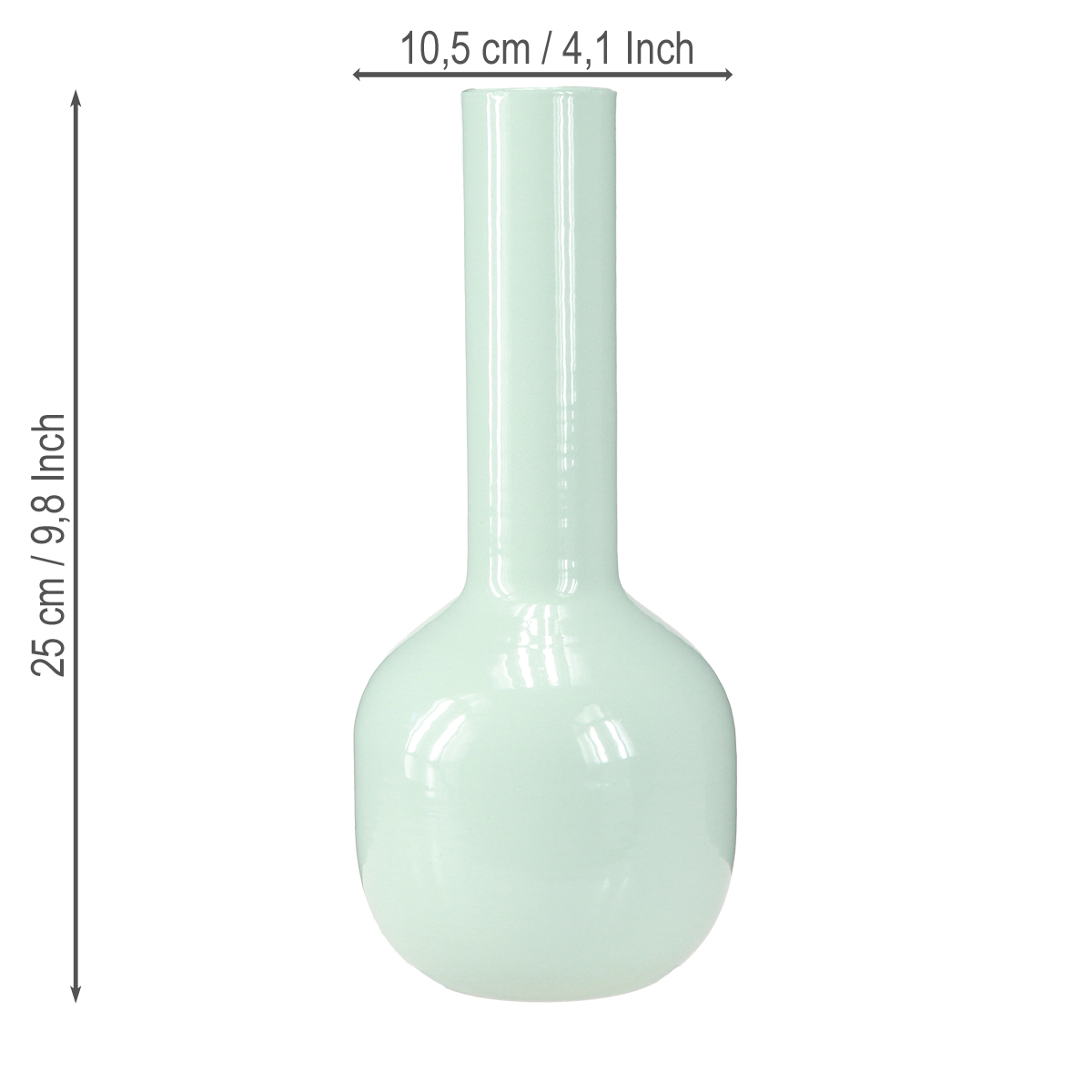 A mentazöld zománcozott fémváza több, mint pusztán virágtartó edény – stílusos otthoni kiegészítő, amely minden helyiségnek friss aurát kölcsönöz. Hosszú, keskeny nyaka és hagymás talpa modern megjelenést kölcsönöz neki. A világos mentazöld különösen vonzóvá teszi őket tavaszi és nyári dekorációhoz. Körülbelül 25,5 cm magasságával és körülbelül 10,5 cm átmérőjével ez a váza harmonikusan illeszkedik számos belső stílusba, a moderntől a skandinávig a klasszikusig. A mentazöld zománcbevonat frissességet és harmóniát sugárzó színt biztosít, ideális a kellemes és barátságos életkörülményekhez. Kombináld a vázát más zöld díszítőelemekkel, vagy használd szemet gyönyörködtetőként. Akárhogy is, a zománcozott fémváza igazi fénypont.