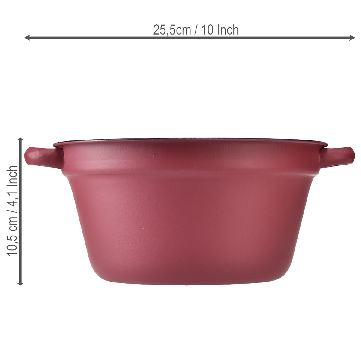 Ez a kerek fém vödör tökéletes kiegészítője minden háztartásnak. Az edény külseje élénk piros színben pompázik, míg a belseje barna bevonattal lep meg. A felső fekete vonal elegáns megjelenést kölcsönöz a növényeknek szánt dekoratív kádnak. A fogantyúk kényelmes szállítást és sokoldalú felhasználást biztosítanak.