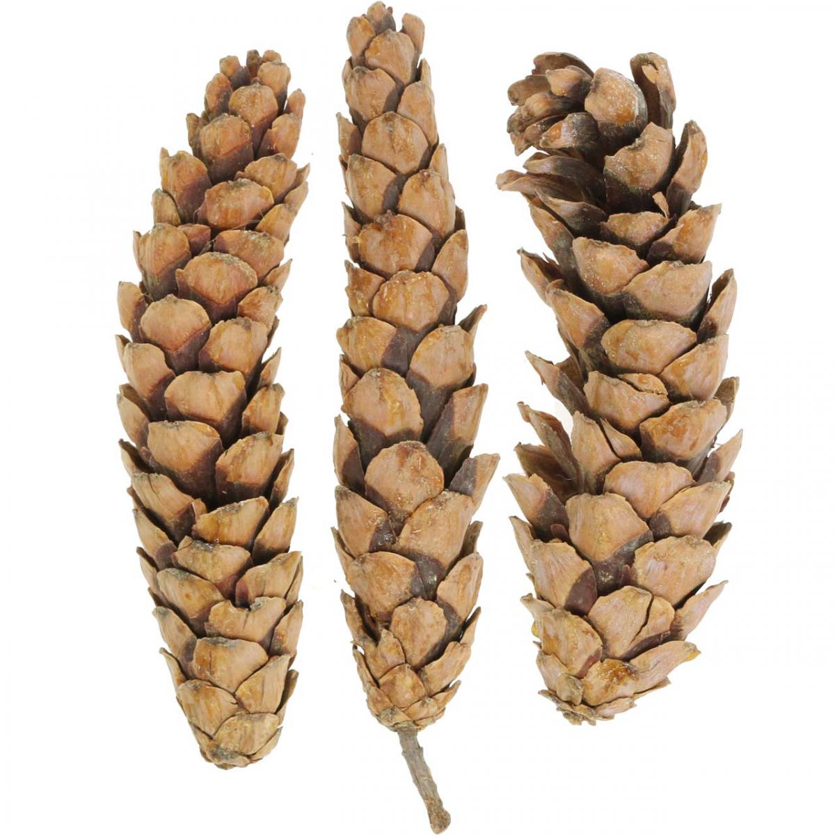 A Weymouth fenyőtobozok kivételesen gyönyörű természeti tárgyak! Ennek a Strobus típusnak a különösen hosszú kúpjai a szokásos fenyőtobozokhoz képest valamivel keskenyebbek, enyhén íveltek és kissé nyitottak. A díszkúpok világos natúrbarnája elrendezésben és koszorúban is nagyon jól mutat.A természetes kúpoknak hosszú az eltarthatóságuk, ezért alkalmasak száraz elrendezésekre, például emlékmű- és temetkezési virágkötőkben. A Weymouth-kúpokkal és egzotikus fajokkal való elrendezés mindenképpen impozáns és méltóságteljes sírdísz.