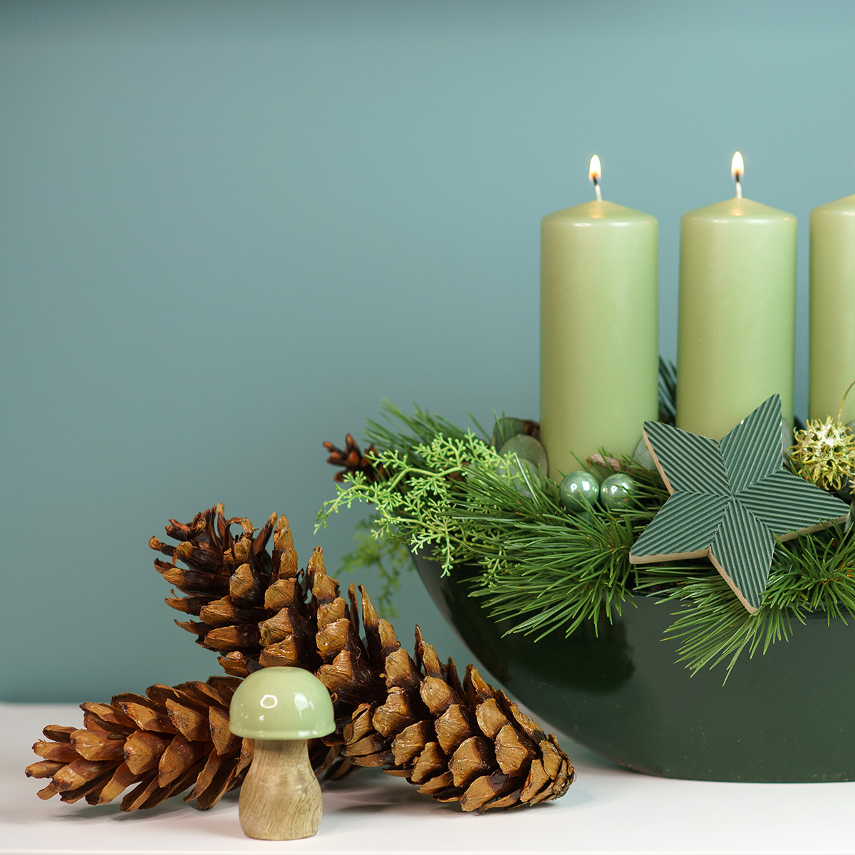 De a fenyőtobozok is sokkal fontosabb szerepet töltenek be adventben, mint a fenyőtobozok: A dísztobozokat egy kis dróttal rögzíthetjük az adventi koszorúhoz vagy karácsonyi elrendezéshez, vagy egyszerűen kirakhatjuk a dísztányérra. Alternatív megoldásként a fenyőtobozokat tűlevelű ágakra vagy egyéb dekoratív ágakra is rögzítheti forró ragasztóval.