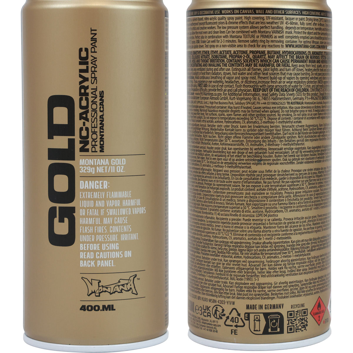 A Montana Cans festékszóróinak megvan az az előnye is, hogy a gyártó számos rendszere kombinálható egymással. A Montana Gold sorozatból bármilyen akril lakkot használhat, például a fémes hatású spray-kkel és a Montana átlátszó lakkjával.