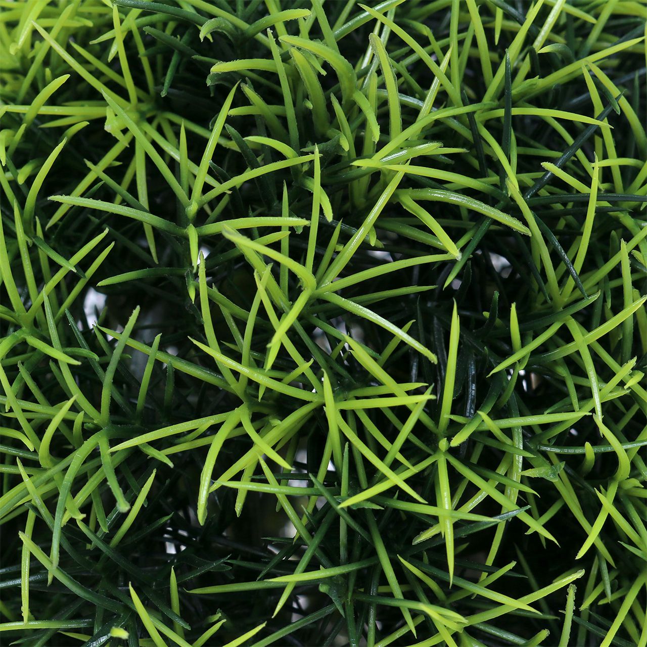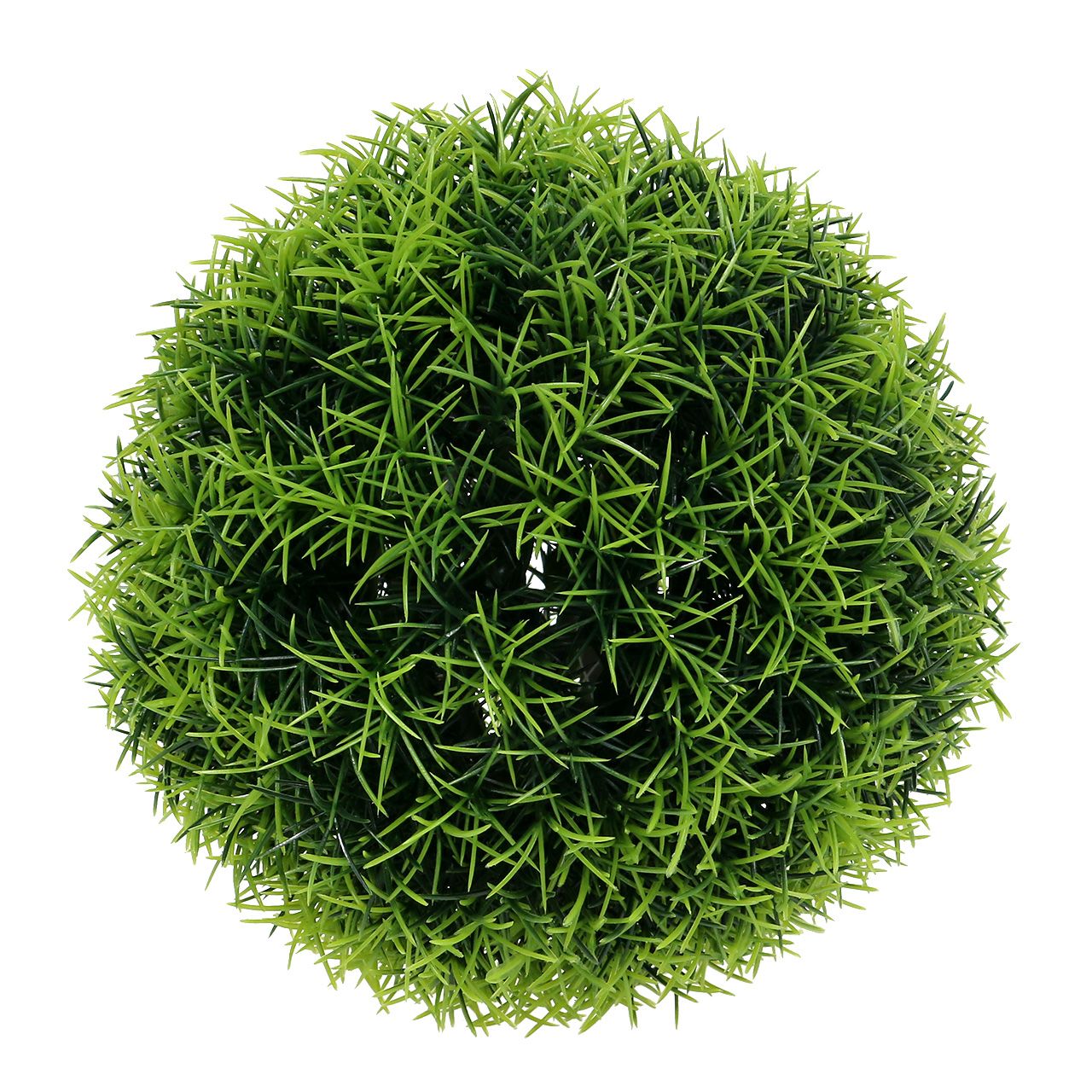 A kerek műnövényt más díszítőelemekkel is kombinálhatja. Például, ha van egy üzlete és szereti feldíszíteni a kirakatot, akkor ezt a fűgolyót használhatja nyári dekorációként, és valódi vágott virágokkal, állatfigurákkal és néhány bokorral kombinálva hatékony és nyüzsgő nyári világot teremthet.