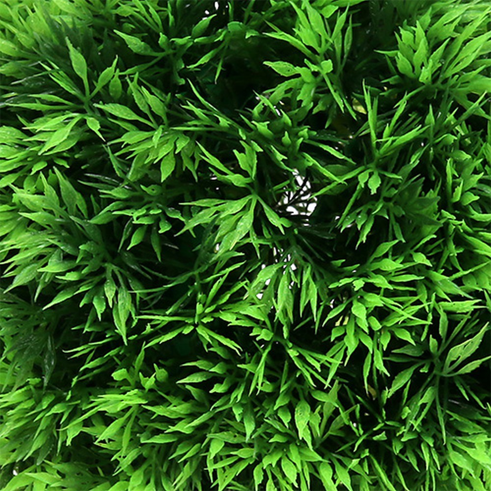 A dekorációnak szánt zöld fűgolyó körülbelül 18 centiméter átmérőjű, és egy műanyag drótvázból áll, amelyre műfüves csomókat rögzítenek. A világoszöld hegyek és az alsó sötétzöld lombozat keveréke lenyűgöző színjátékot hoz létre, amely bármilyen helyiséget feldob!