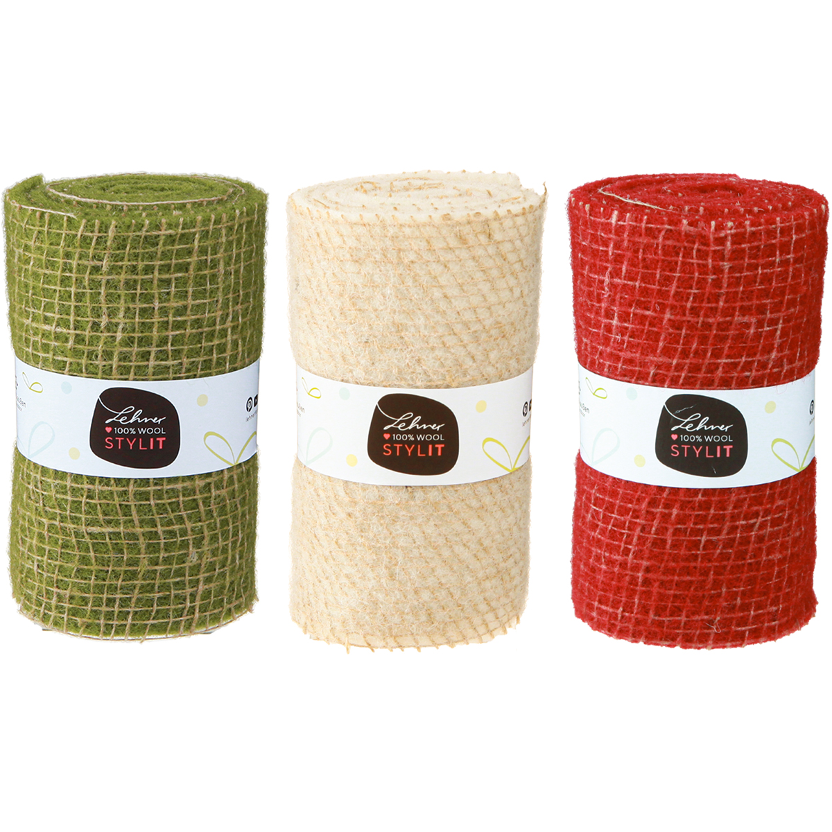 A jutarácsos filcszalag egyedi, kézzel készített megjelenésével lenyűgöz, és igazi fénypont a dekoráció szerelmeseinek. A színes gyapjúszalag és a természetes jutaháló harmonikus kombinációja meleg, hívogató hangulatot kölcsönöz otthonának vagy rendezvényének. A fehér filcszalagnak különösen őszi hangulata van. A fenti világosbarna jutarács meleg bézsre sötétíti. A vörös, mohazöld és bézs különböző színkombinációinak köszönhetően a filcből és jutából készült dekoratív szalagok tökéletesen illeszkednek egy vidéki házba vagy a kopott sikkes stílusba, és csodálatosan kombinálhatók rusztikus vagy natúr otthoni kiegészítőkkel.