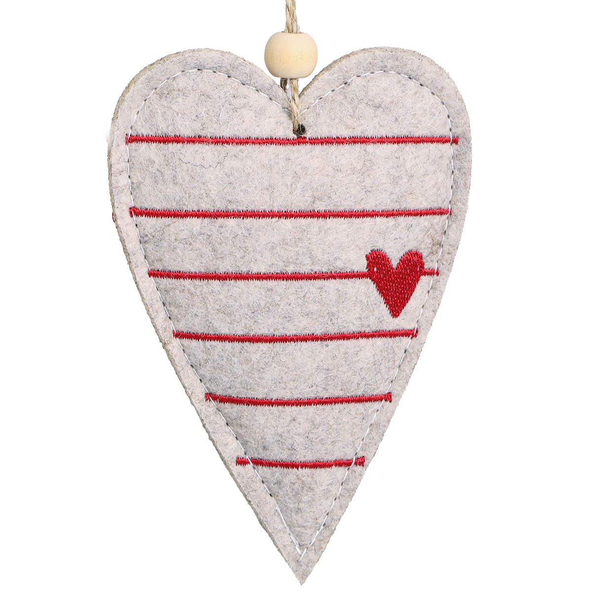 Szív mint karácsonyfadísz filcből bézs és piros színben - romantikus karácsonyi dekoráció