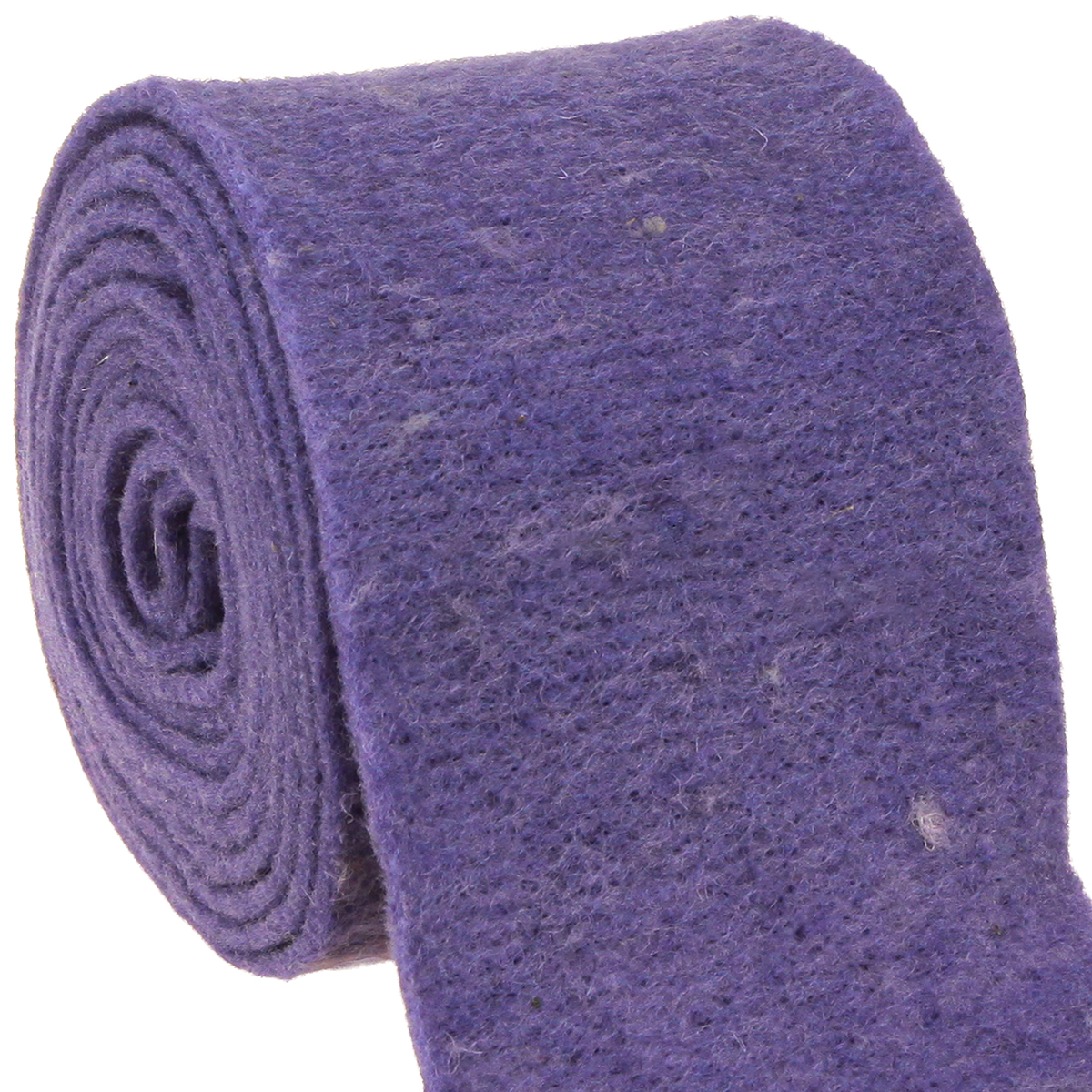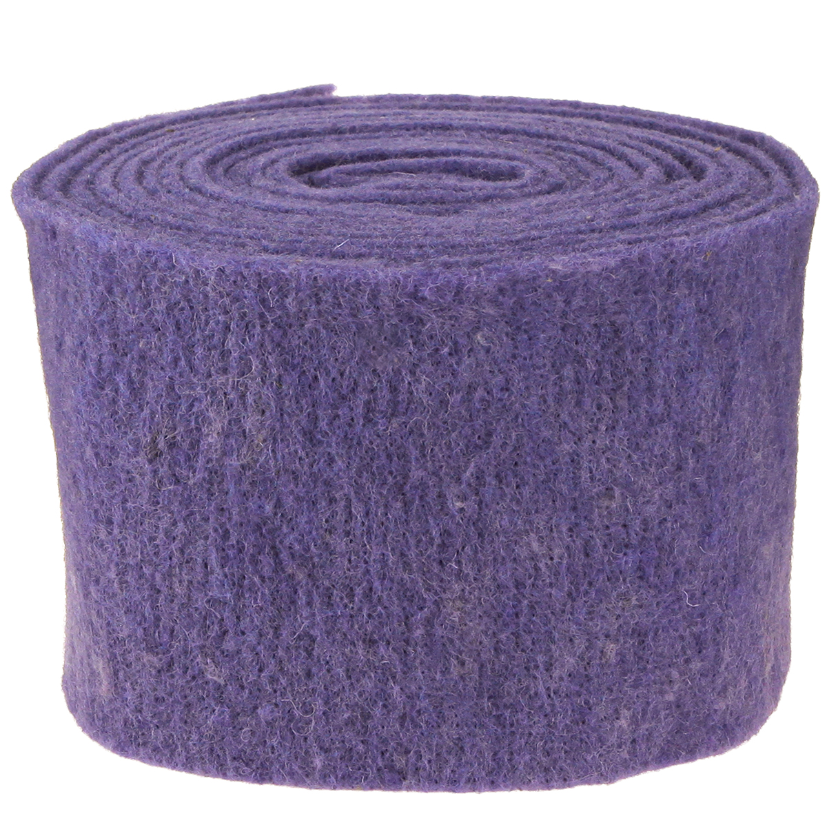 A báránygyapjúból készült lila filc szalag körülbelül 15 centiméter széles és összesen körülbelül 5 méter hosszú, és ideális kézműveskedéshez, varráshoz, díszítéshez. Nagy tekercsbe tekerve könnyen vágható és rövidíthető.