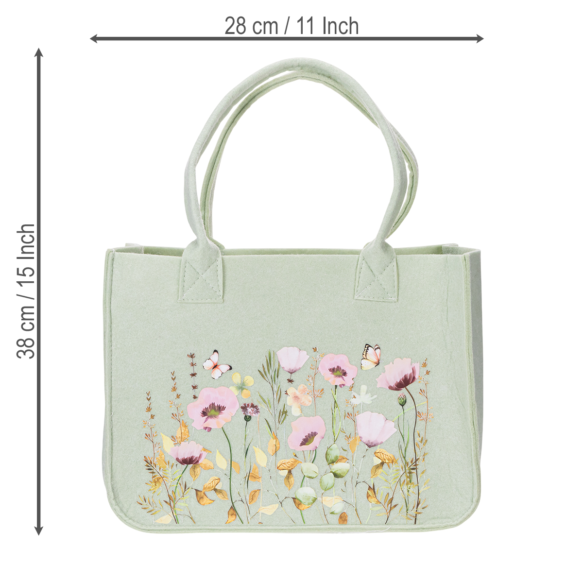 Virágmintás filctáskánk nem akármilyen kézitáska. Természetes dizájnjával, strapabíró anyagával és multifunkcionalitásával lenyűgöző. Nagyszerű méreteivel, 38 cm magas, 28 cm hosszú és 15 cm széles, tökéletes egyensúlyt kínál a tér és a kényelem között. Legyen szó könyvekről, bevásárlásról, laptopról vagy akár egy pikniktakaróról – mindennek megvan a maga helye. A masszív filcpántoknak köszönhetően a táska kényelmesen hordható vállon.