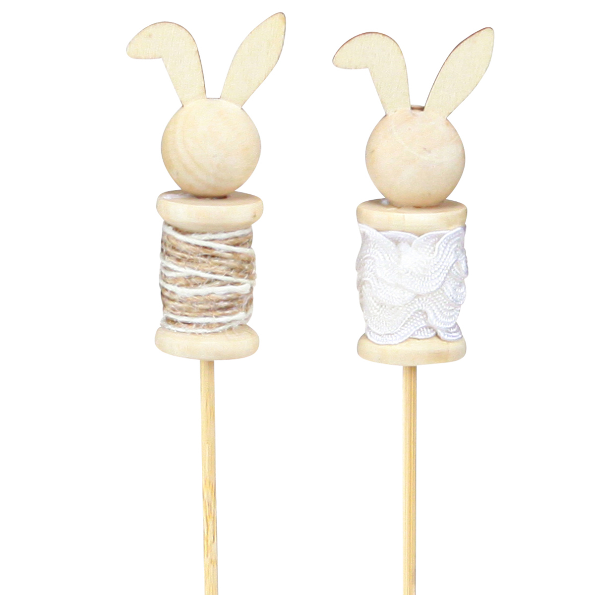 Termék neve: Flower Stick Rabbit Wood Natúr, Barna, Fehér L32cm 8 db
