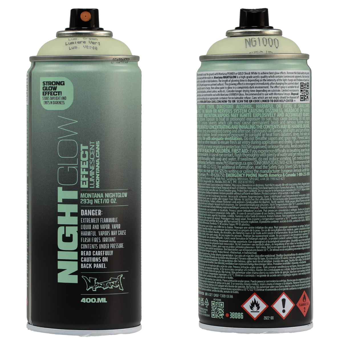 A Nightglow fluoreszkáló szín effektpermetként a Montana Canstól kísértetiesen szép zöld tónusú, de a fluoreszkáló szín narancssárga színben is elérhető üzletünkben.