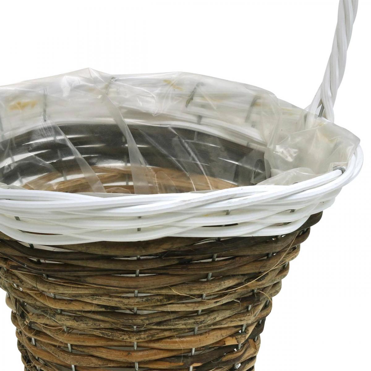 Fogantyús kosár, natúr kosár ültetéshez, virágkosár kerek natúr, fehér H49cm Ø23,5cm
