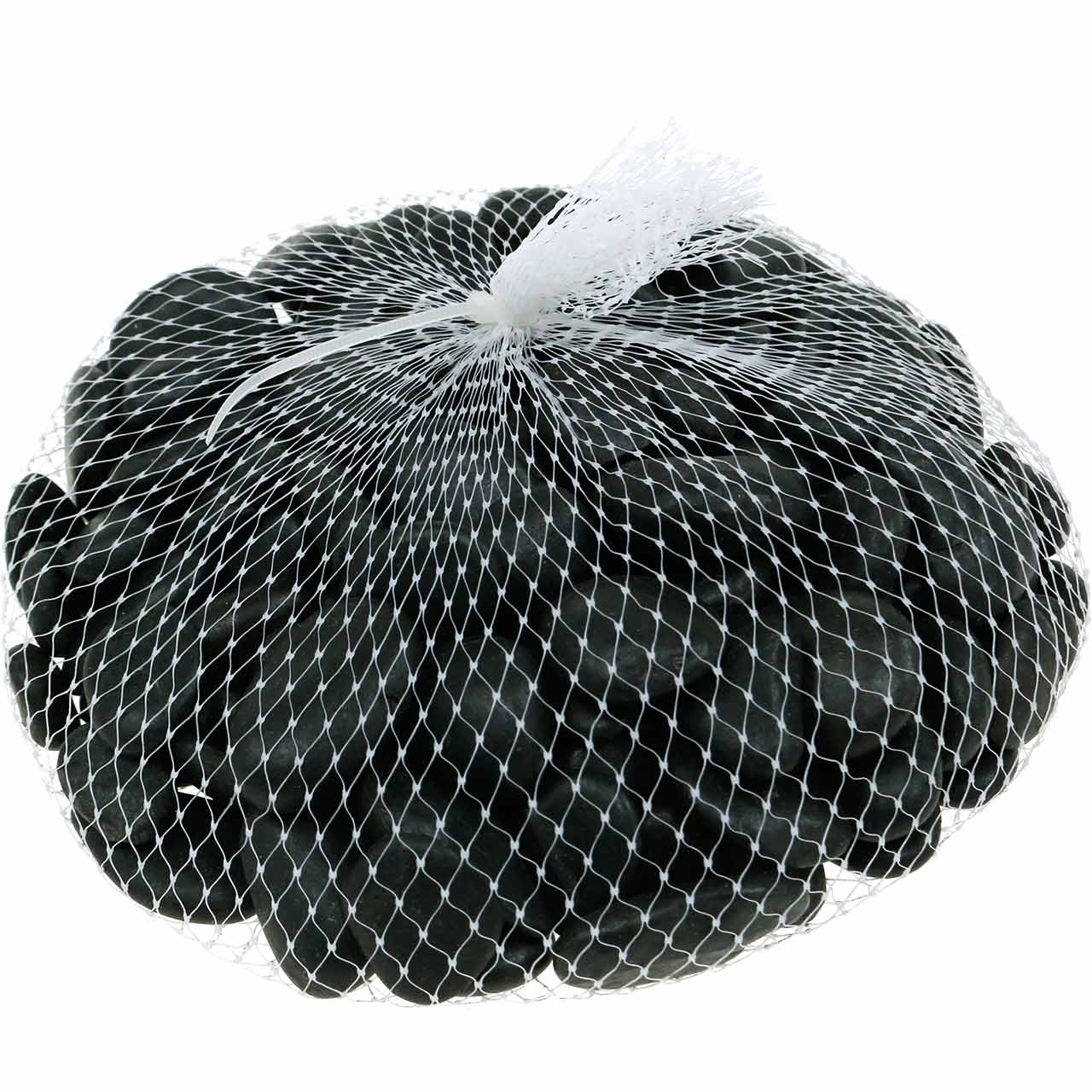 A mélyfekete kavicsokat 1 kg-os műanyag hálóban szállítjuk. A díszkövek nagyjából 2-3 centiméter magasak vagy hosszúak, bár ez az érték csak nem kötelező érvényű iránymutató.