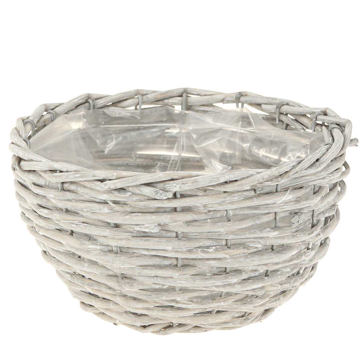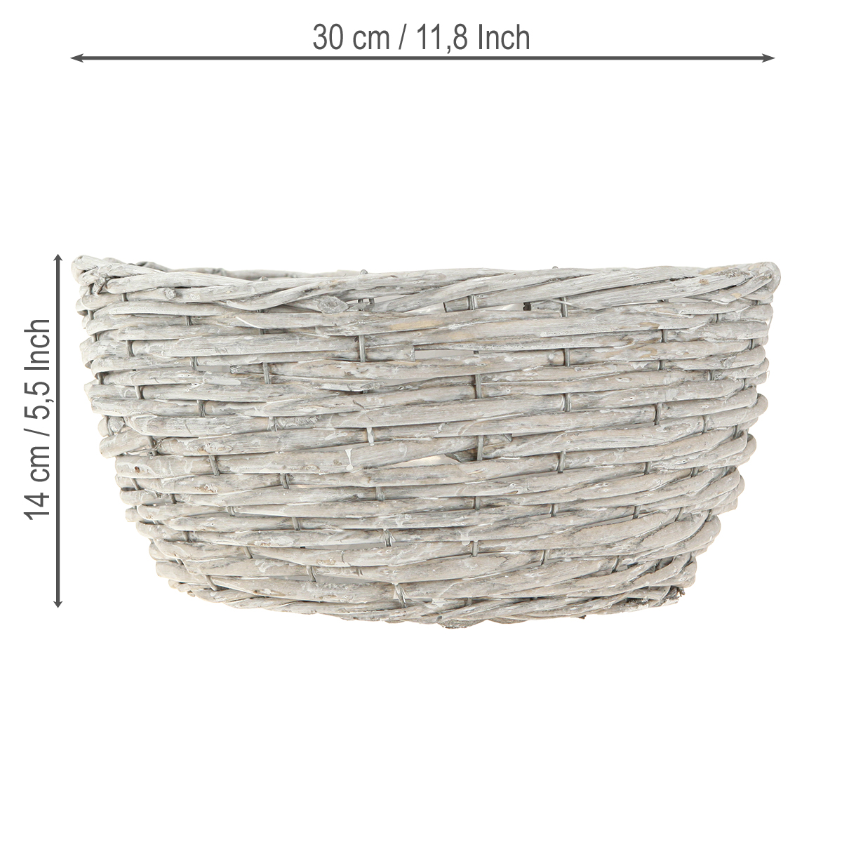 Adjon egy csipetnyi eleganciát otthonának fehér-szürkére mosott fűzfaágakból készült kerek növénykosár-készletünkkel. Ez a háromrészes készlet nemcsak egyszerű szépségével, hanem sokoldalú felhasználásával is lenyűgöz. Ennek a fonott kosárnak a kopott, elegáns megjelenése ideális ahhoz, hogy rusztikus, mégis elegáns megjelenést kölcsönözzön bármely helyiségnek. Legyen szó díszek dekoratív bemutatásáról száraz virághabon az étkezőben, vagy színes virágkompozíciók kereteként a nappaliban – ezek a kosarak igazi szemet gyönyörködtetőek. Körülbelül 30, 25 és 20 cm-es átmérőjükkel és fehér-szürke színükkel nemcsak sokoldalú dekorációs lehetőségeket kínálnak, hanem harmonikusan illeszkednek a meglévő belső terekbe. Növényi fóliával bélelt kosaraink tökéletesek kreatív beltéri kertészkedéshez, de nem időjárásálló természetes fajuk miatt érdemes védett helyen elhelyezni.