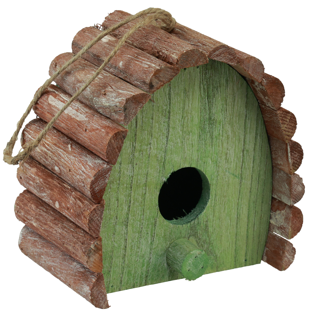 Függő dekorációs madárház kerek tetővel fa zöld barna 16,5×10×17 cm