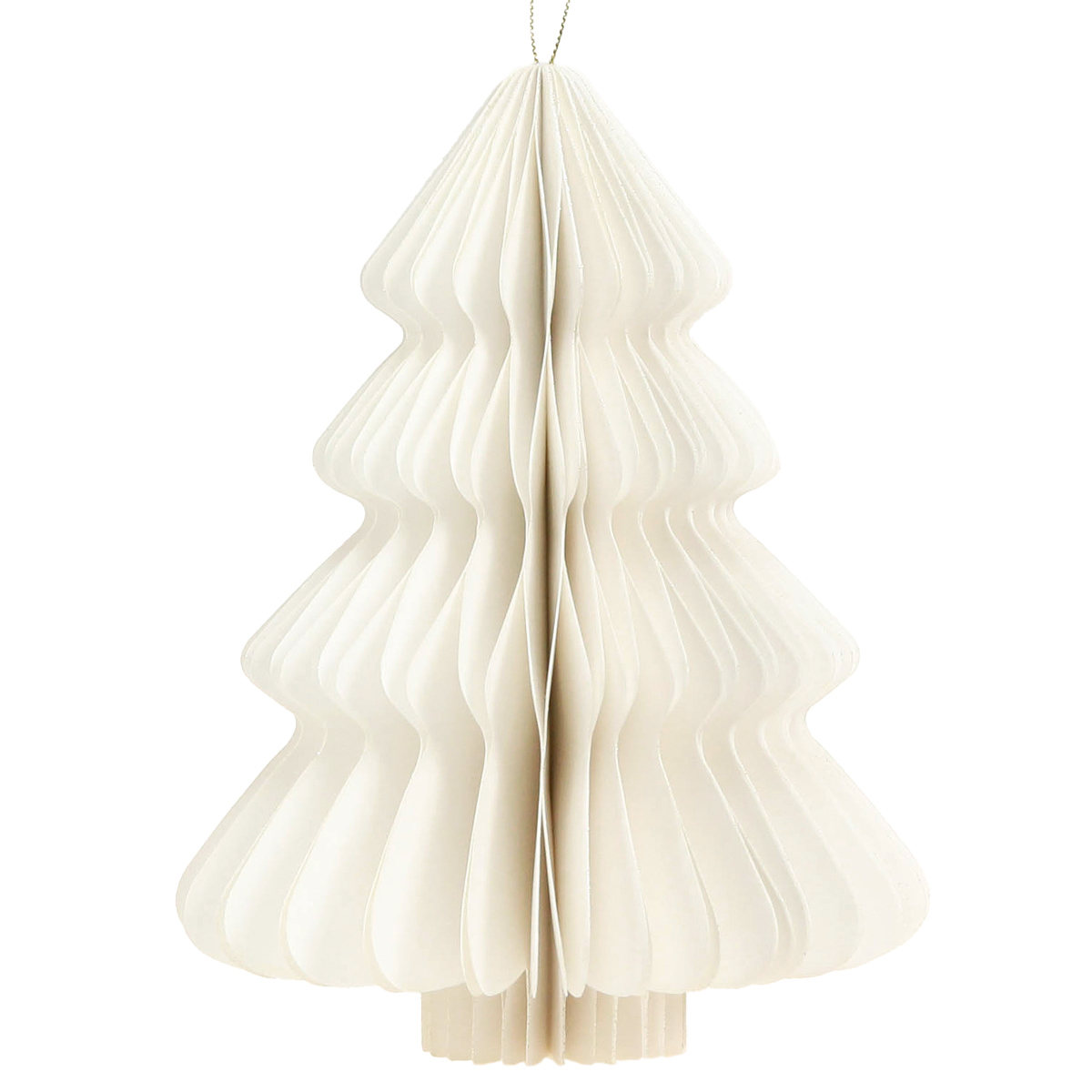 Papír karácsonyfa fehér színben: függő dekoráció a stílusos ünnepekhez ezüst csillámmal