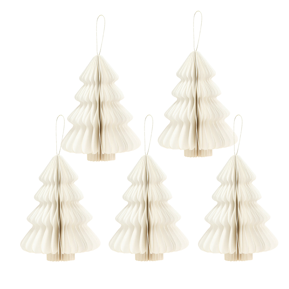 Varázsoljon ünnepi fényt otthonába kitűnő papír karácsonyi díszeinkkel. A fehér és ezüst színű, praktikus, körülbelül 20 cm átmérőjű karácsonyfa modern eleganciát hoz minden helyiségbe. Ezek az ötrészes dekorációk ideálisak a nappali és az iroda szemet gyönyörködtetőként, és könnyen beilleszthetők különböző életkoncepciókba.