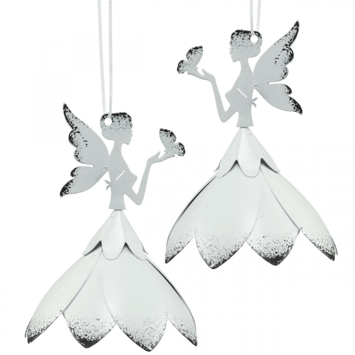 Függő Medál Elf Dekoráció Fém Fehér Ø6cm H9cm 4 db