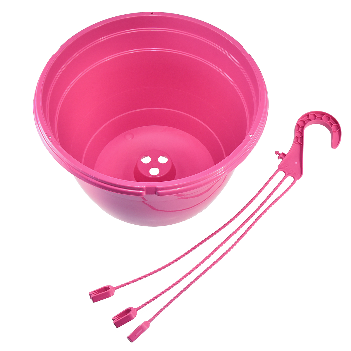 Az élénk rózsaszín árnyalatú, szemet gyönyörködtetőnek tervezett függő virágcserép a stílusos megjelenést praktikus használattal ötvözi. A lyukakkal ellátott, megemelt alappal ellátott függő cserep hatékonyan elkerüli a bevizesedést és elősegíti a növény egészséges fejlődését. A lyukakkal ellátott megemelt középrész optimális szellőzést és vízelvezetést biztosít. A robusztus felfüggesztésnek köszönhetően az akasztófazék könnyen rögzíthető különböző helyekre, legyen az erkélyen vagy teraszon.
