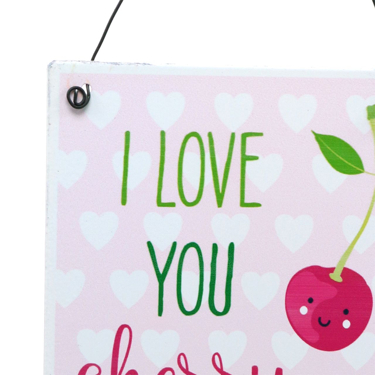 Termék neve: Függőtábla "Cseresznye" 17cm x 12cm 4db - Dekoratív tábla gyümölcsös szerelmi vallomással