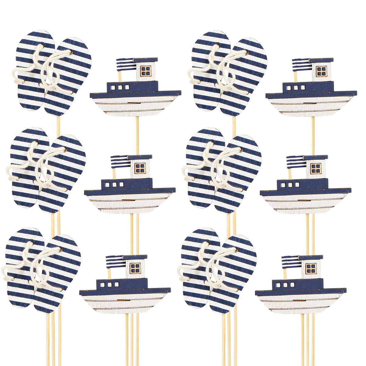 Garden Stake Tengeri Fa papucs csónak kék fehér 8cm 12 db