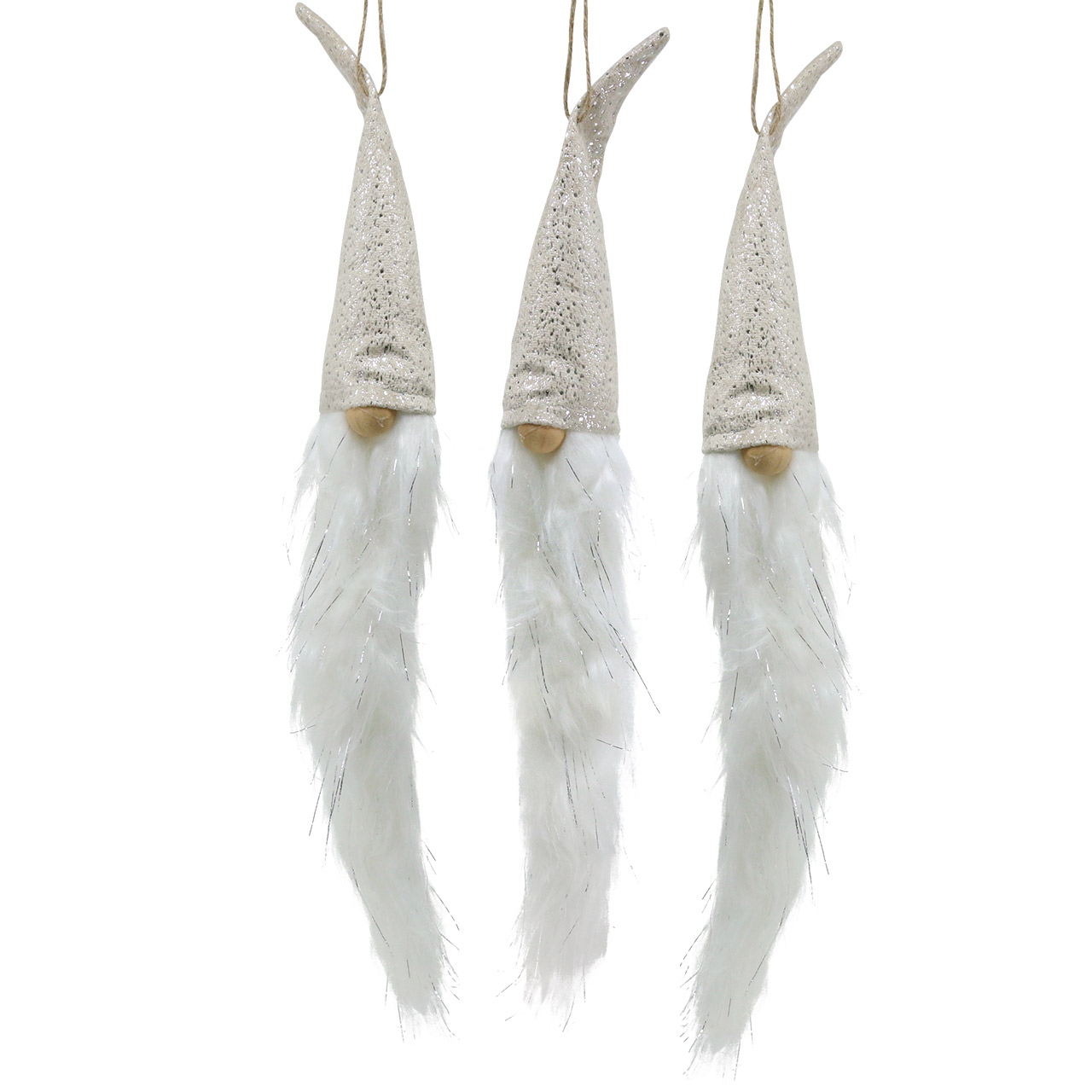 A hegyes sapkával ellátott gnómot 3 darabos készletben akaszthatod. A karácsonyi manók mindegyike azonos kialakítású. Az akasztós gnómok teljes hossza szalaggal együtt körülbelül 57 centiméter, a dekoratív figurák magassága körülbelül 48 centiméter.