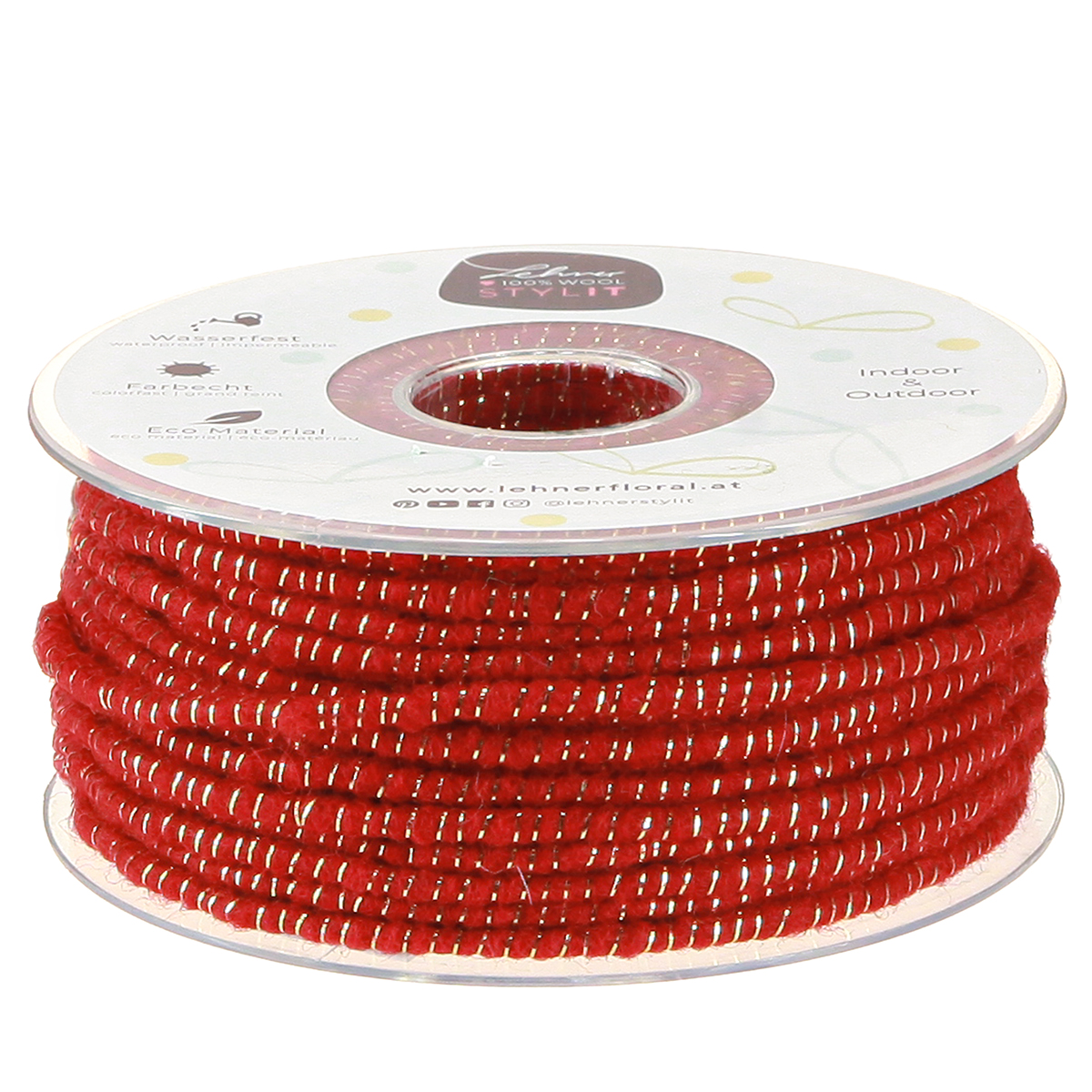 A csillámmal és dróttal ellátott gyapjúzsinórt hozzávetőleg 33 méter hosszúságban kapja meg. A filczsinór vízálló és színtartó. A gyapjúszál ezért beltéren és kültéren is használható.