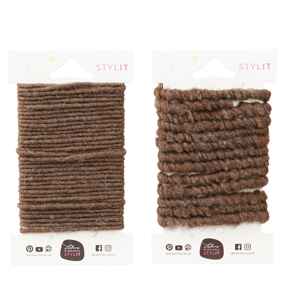 2 barna gyapjúszál kanócfonalként és filczsinór a díszítéshez: kreatív lehetőségek a kézművesség szerelmeseinek
