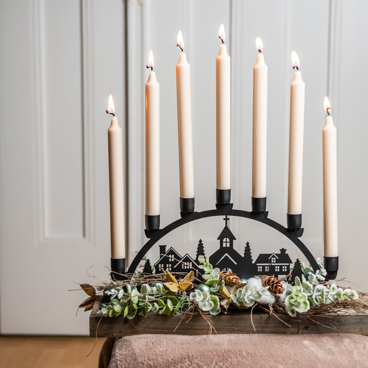 A gyertyaív különösen népszerű esti ablakdíszként, komfortot és karácsonyi hangulatot teremt. A hozzáillő gyertyatartókat gyönyörű színekben találja üzletünkben.