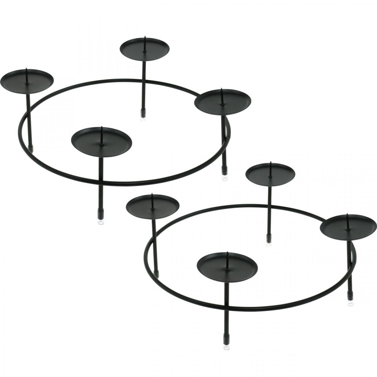 Termék neve: Gyertyatartó 4 gyertyához fekete fém asztaldísz Ø23,5cm 2db