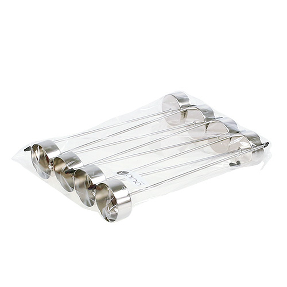 Az ezüstbe ragasztható teamécses-tartó 8 db-os kiszerelésben kapható, és körülbelül 21 centiméter magas. A dugó körülbelül 19,5 centiméter hosszú, a gyertyák tartójának külső átmérője pedig körülbelül 4 centiméter, belső átmérője pedig körülbelül 3,8 centiméter.