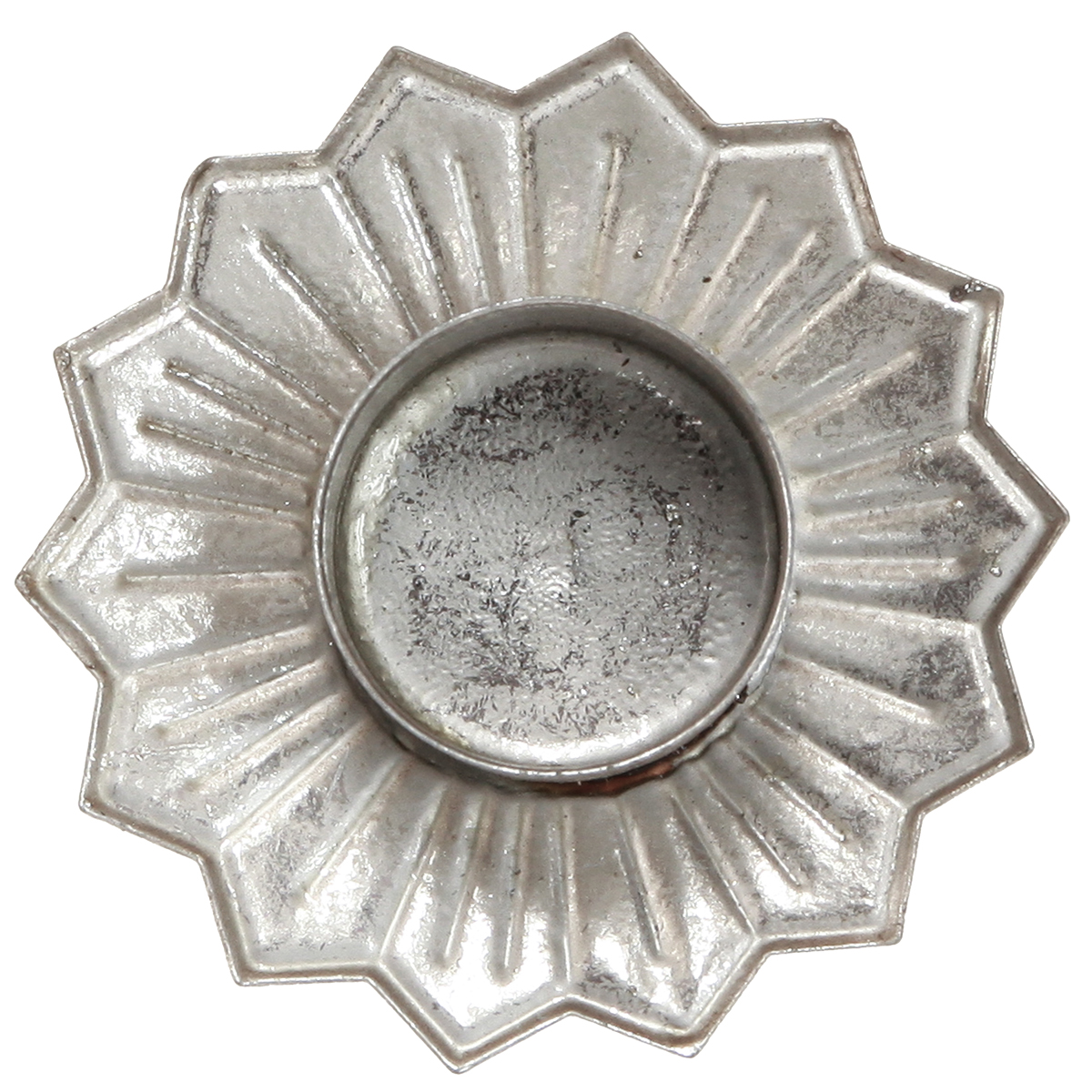 Varázsoljon ünnepi hangulatot otthonába a kiváló minőségű ezüst színű fém mécsestartóval. A négy elegánsan fogazott mécsestartó praktikus tűvel van felszerelve, amely ideális az asztali dekoráció kreatív megtervezéséhez, vagy hangulatos elemként a lakótérben.