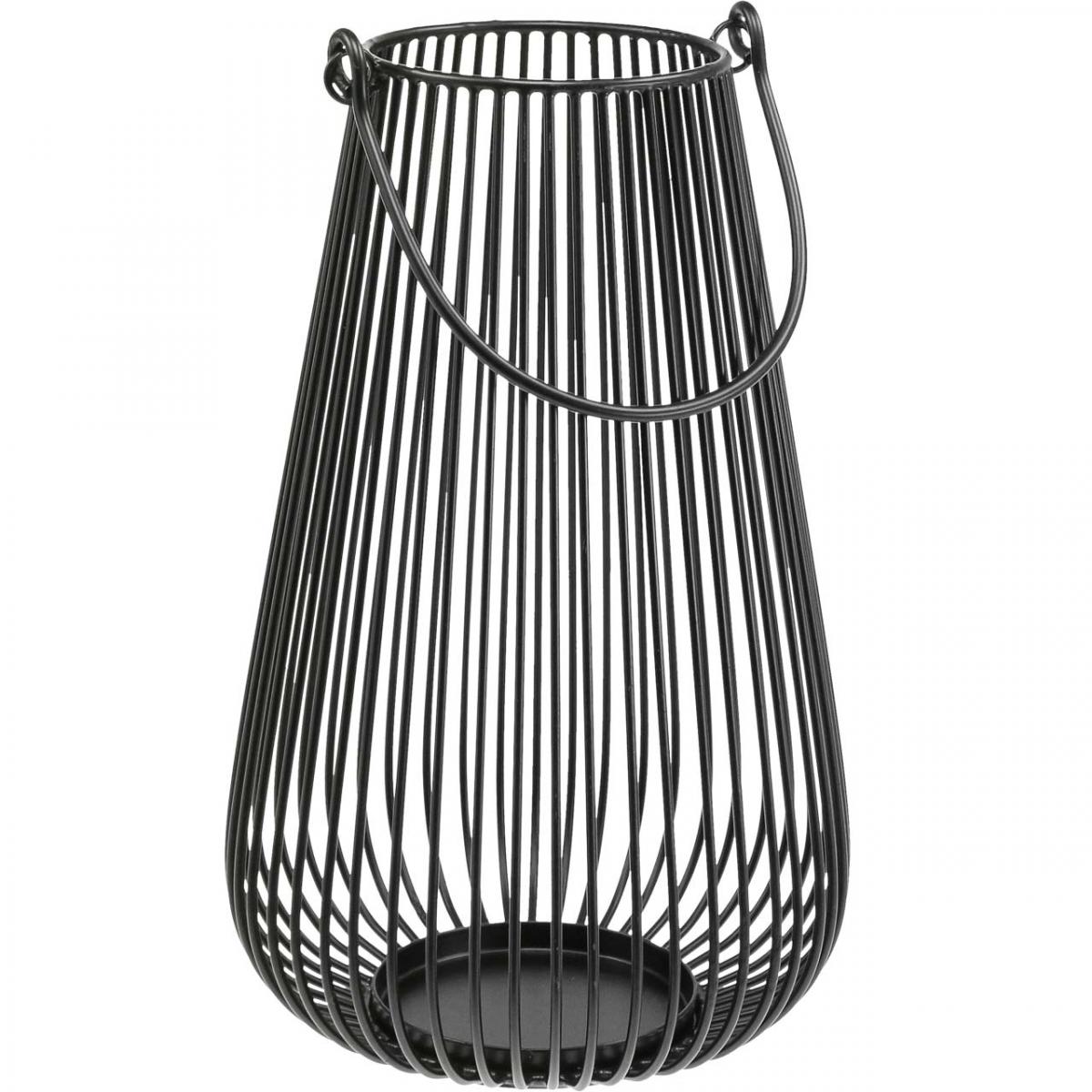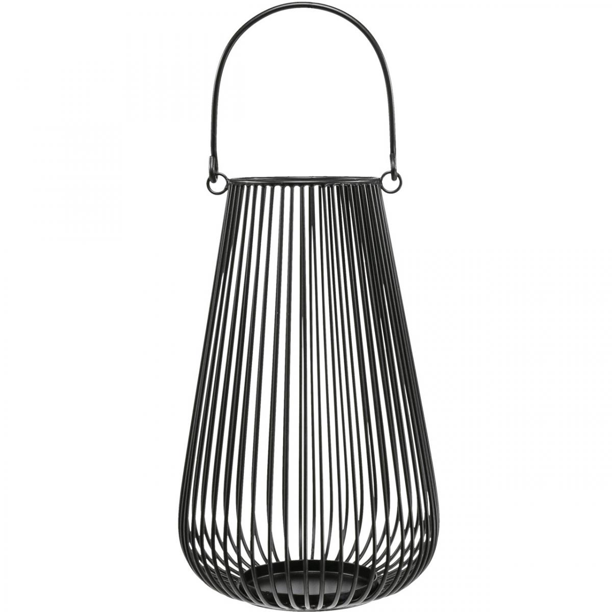 Ez a fekete gyertyatartó hosszúkás díszlámpás alakú. A fogantyús lámpa szélesebbé és gömbölyűbbé válik az alja felé. Atmoszférikus gyertyafény ekkor átvilágíthat az íves fémrudakon.
